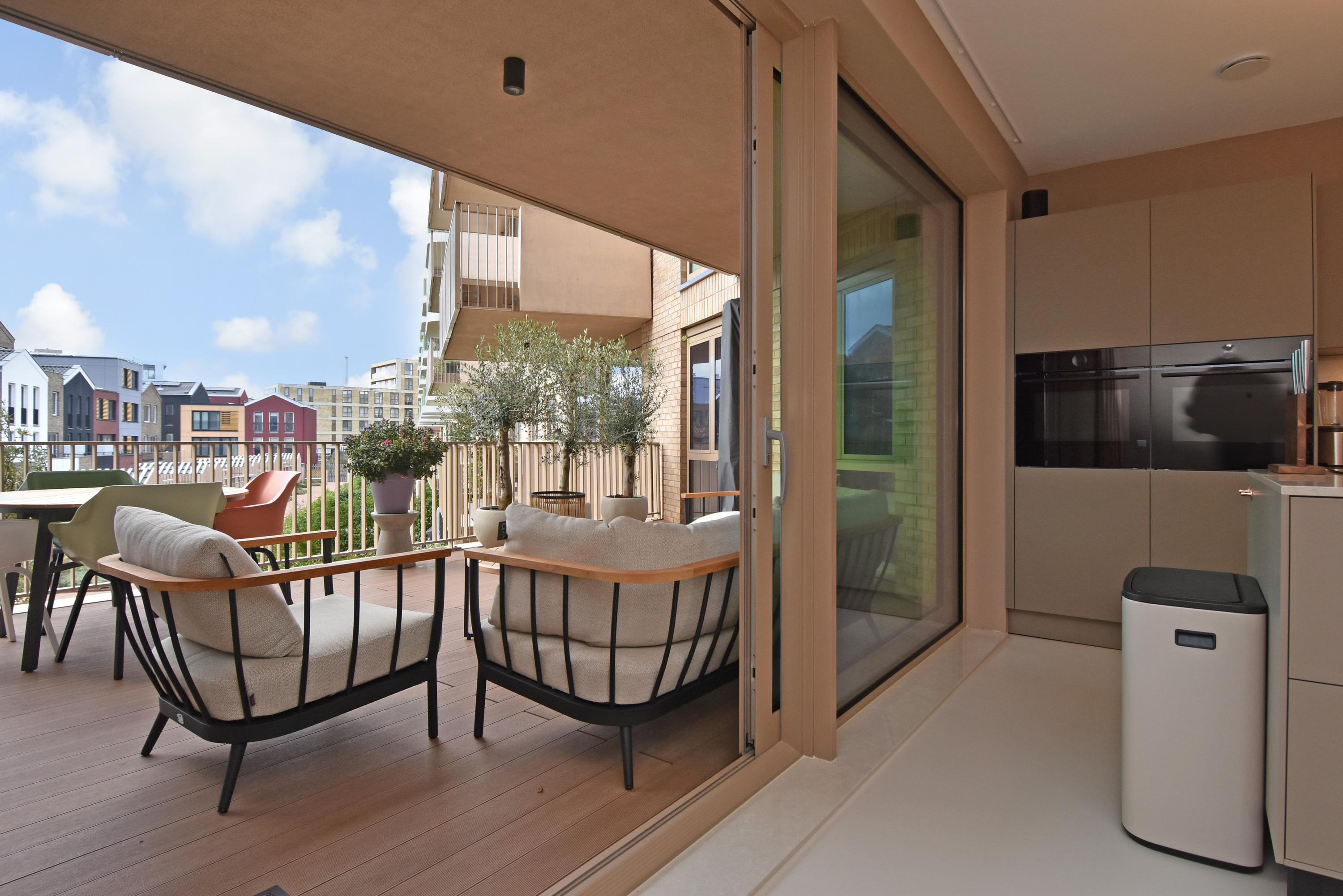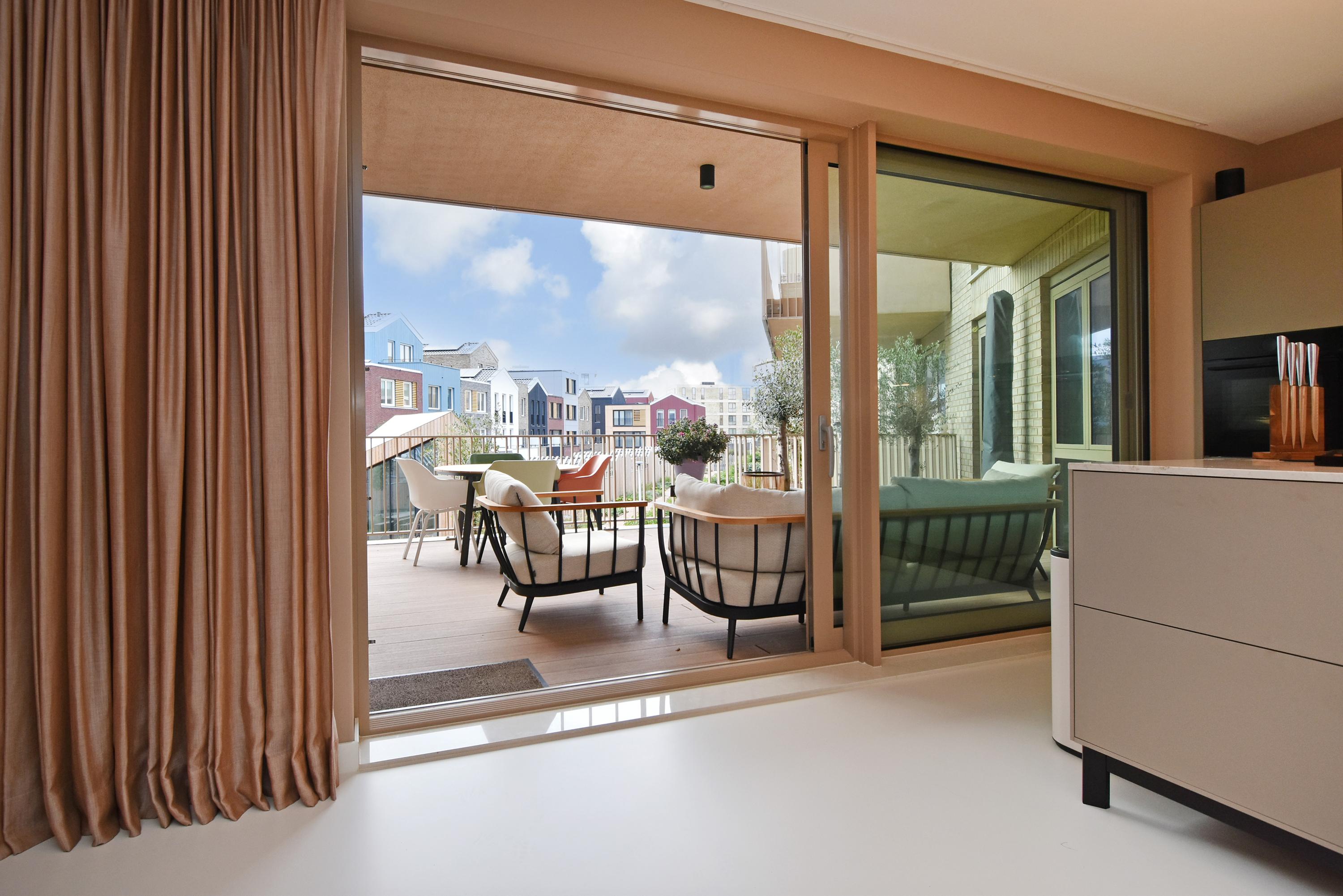 Apartment Den Haag with sea views offers a rare fusion of modern architecture and understated luxury. Situated in Scheveningen, this high-end apartment spans 135 m² and features expansive floor-to-ceiling windows that frame the panorama of the harbour and the North Sea. The living area flows seamlessly into a designer kitchen with a cooking island and integrated luxury appliances. Sliding doors invite the outdoors in, connecting the main living space to a private 29 m² balcony overlooking a landscaped courtyard, perfect for quiet afternoons or evening gatherings.