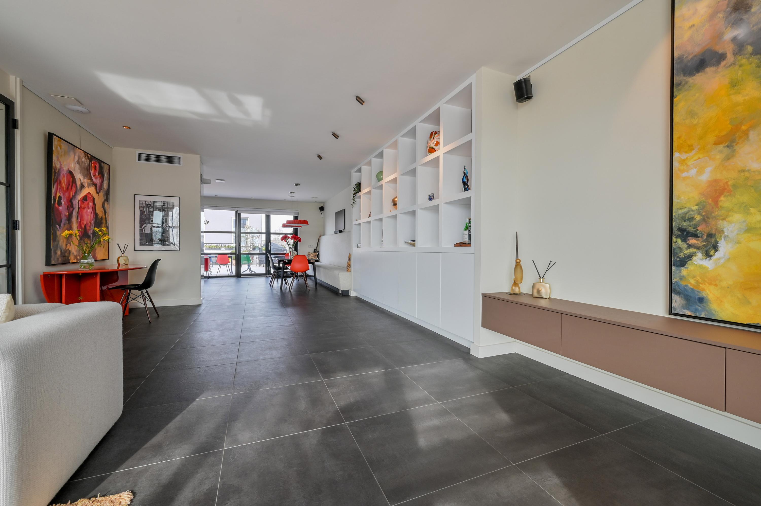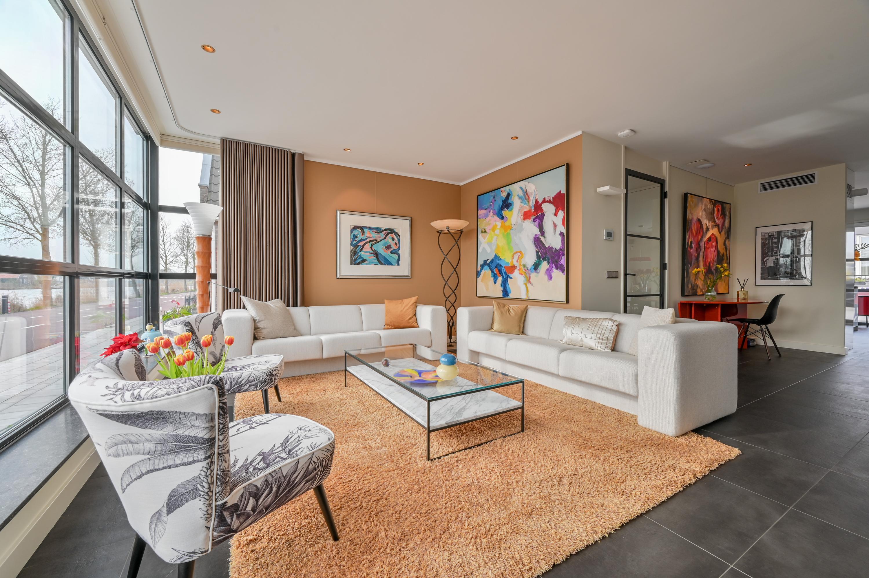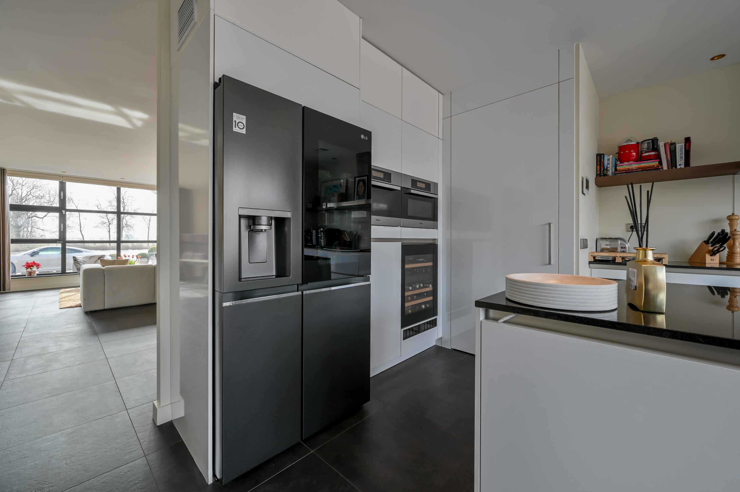 Architecturally reimagined and immaculately finished, the property welcomes with a striking hallway and expansive living room overlooking the Amstel. Large windows embrace daylight and frame panoramic views, while modern domotica and mechanized curtains accent the spatial clarity. The open kitchen at the rear, crafted for sociable living, is fitted with contemporary appliances including a Qooker, combi ovens, and wine climate cabinet, leading to a landscaped terrace garden where space and privacy converge.