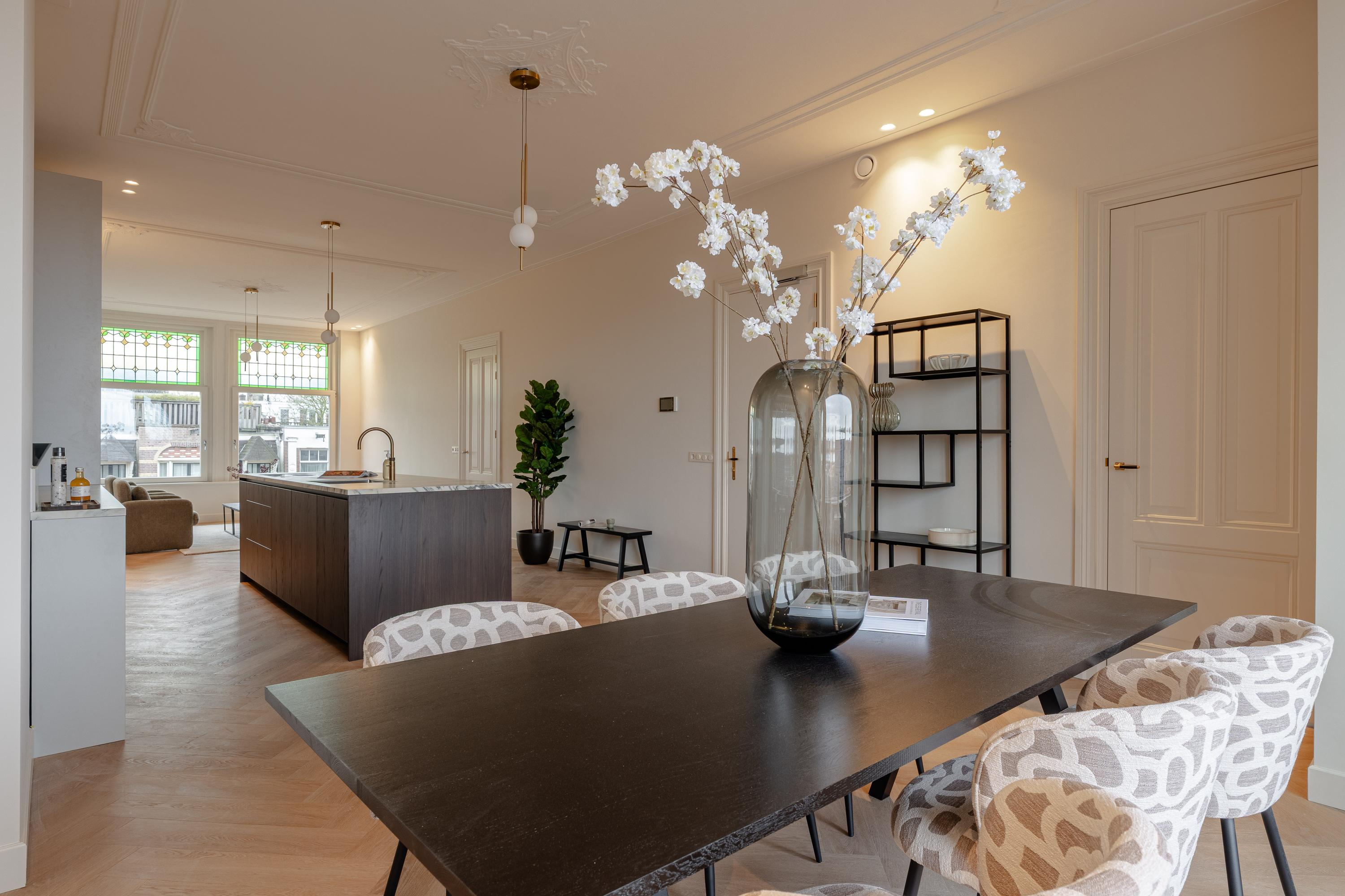 Located on the sought-after Koninginneweg in Amsterdam Oud-Zuid, this elegantly finished apartment of 87.7 m² is situated on the third floor. The property is distinguished by a generous open-plan living area, high ceilings and a quiet position with green views at the rear. With two bedrooms, two bathrooms and a covered balcony, this is a refined and comfortable home in close proximity to the Vondelpark and the Museum Quarter.