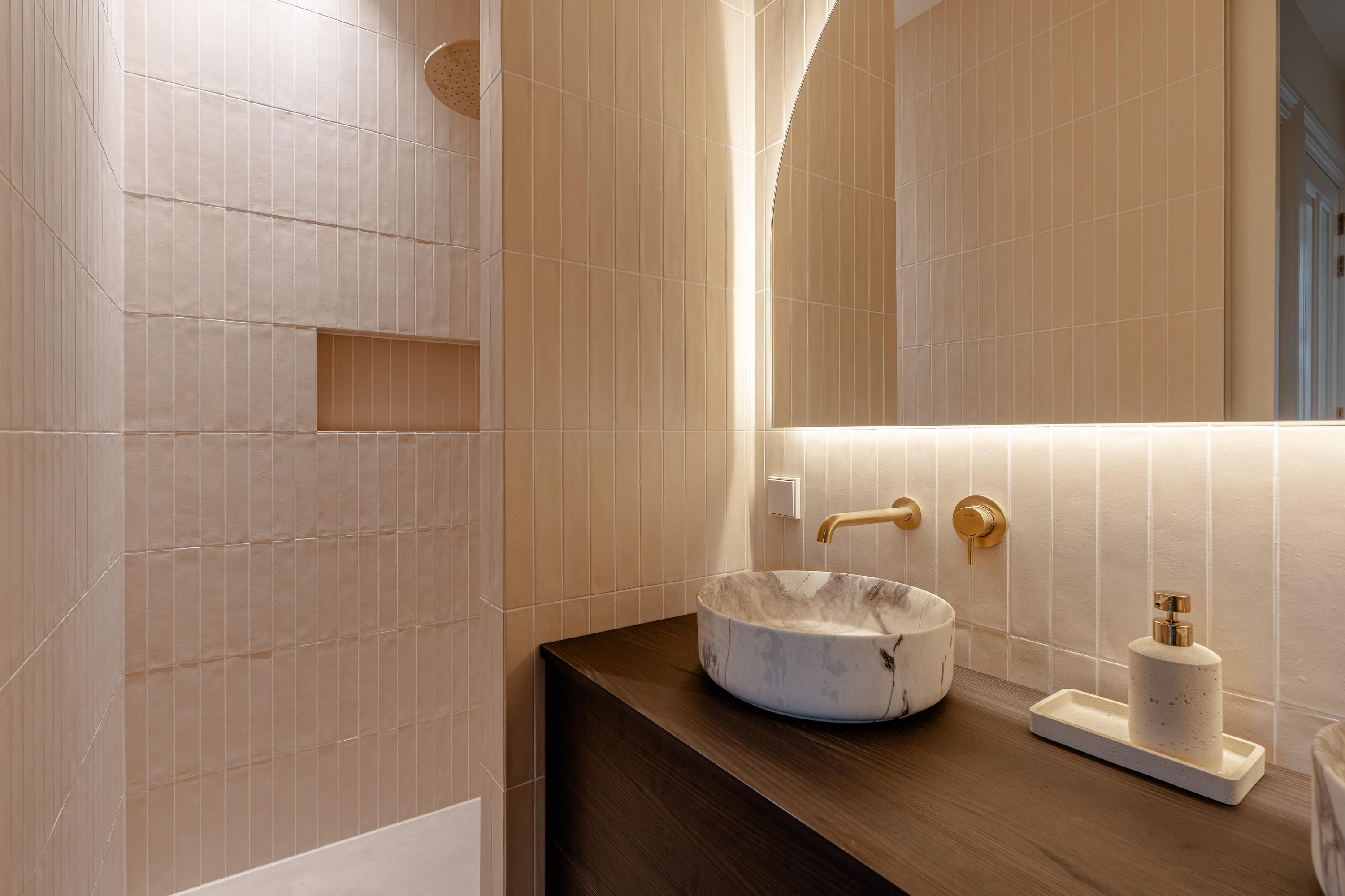 A luxurious and thoughtfully designed apartment with an open living area, high-quality finishes and a quietly situated balcony overlooking greenery.
