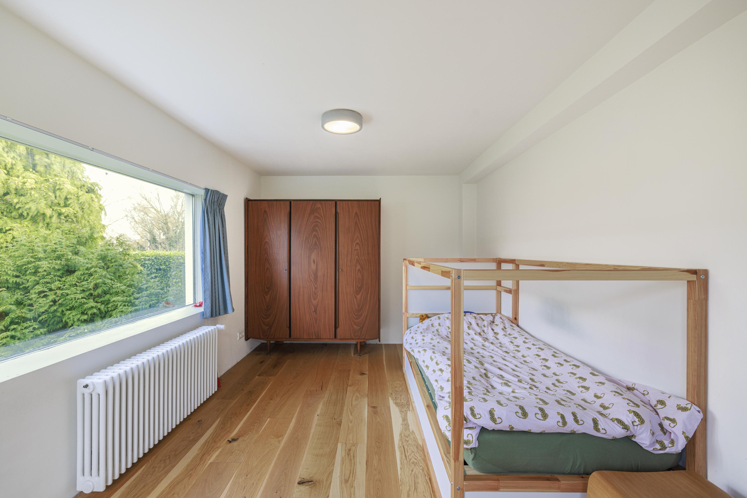The bedroom floors in the original house feel secure while being of generous dimensions.