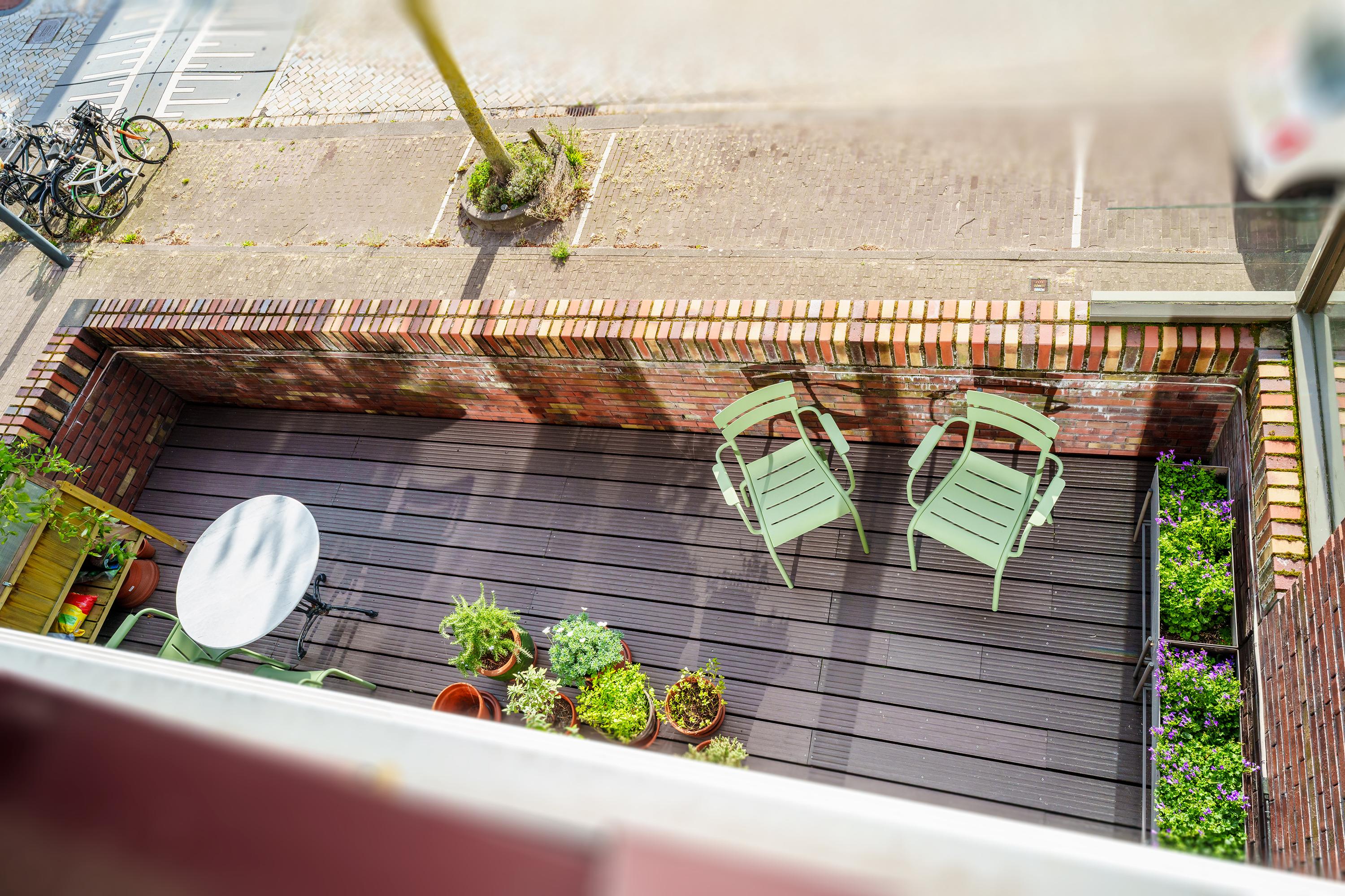A staircase from the second floor leads to the generous roof terrace (over 18 m²), one of the highlights of this property: spacious, sunny and offering unobstructed views over the water and the neighbourhood. The high glass balustrade (providing shelter from the wind) and the decking create a modern, open feel while maintaining plenty of privacy.