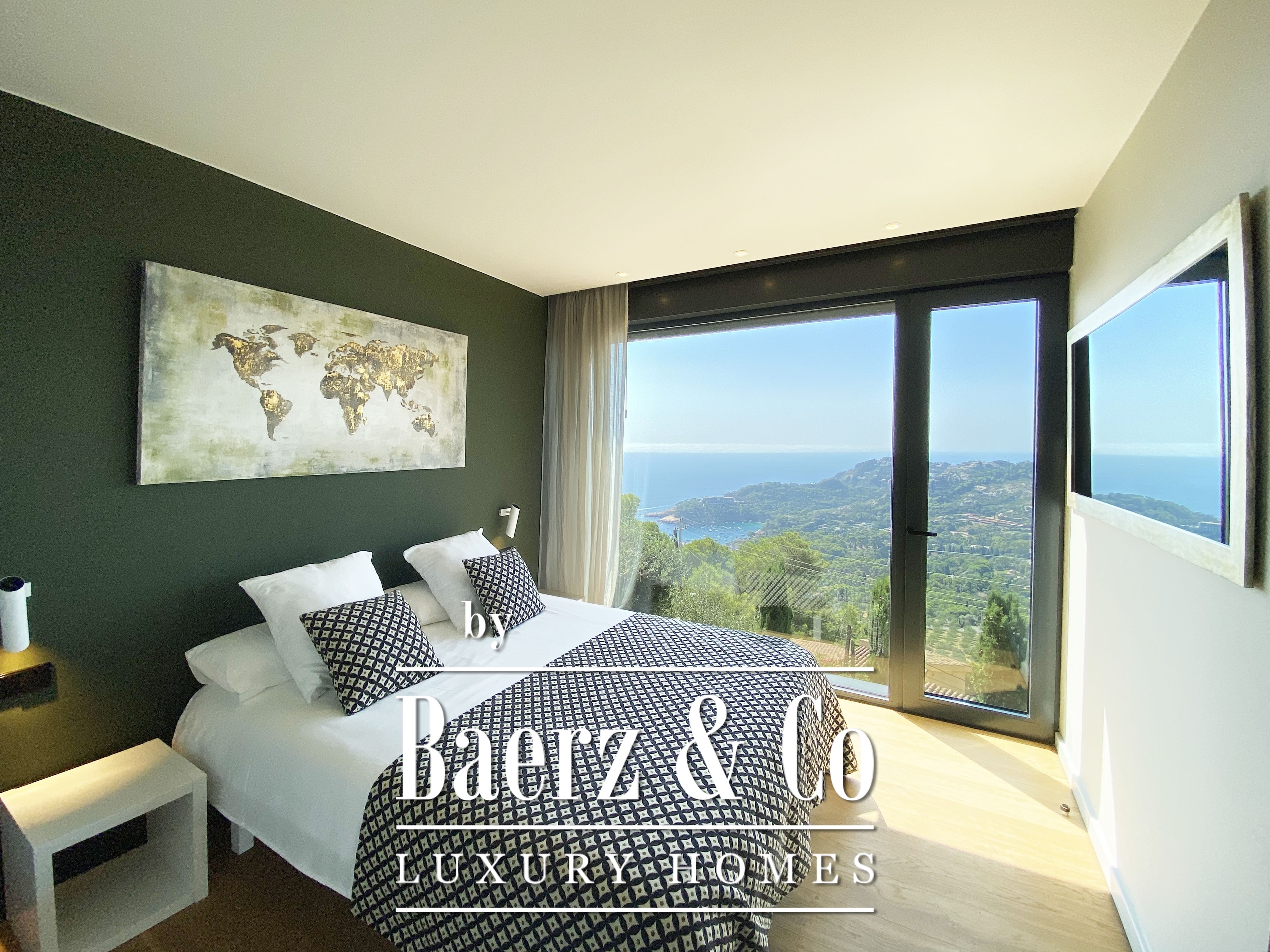 The lower level features three serene bedrooms, each with private bathroom, including one with dressing room and storage. All rooms open to uninterrupted sea views, encapsulating a sense of calm and exclusivity. Facilities include a swimming pool, American kitchen, parking, garage, diesel heating, air conditioning, and built-in wardrobes. Energy class A underscores efficiency throughout. This luxury villa Begur is a unique statement on the Costa Brava.
