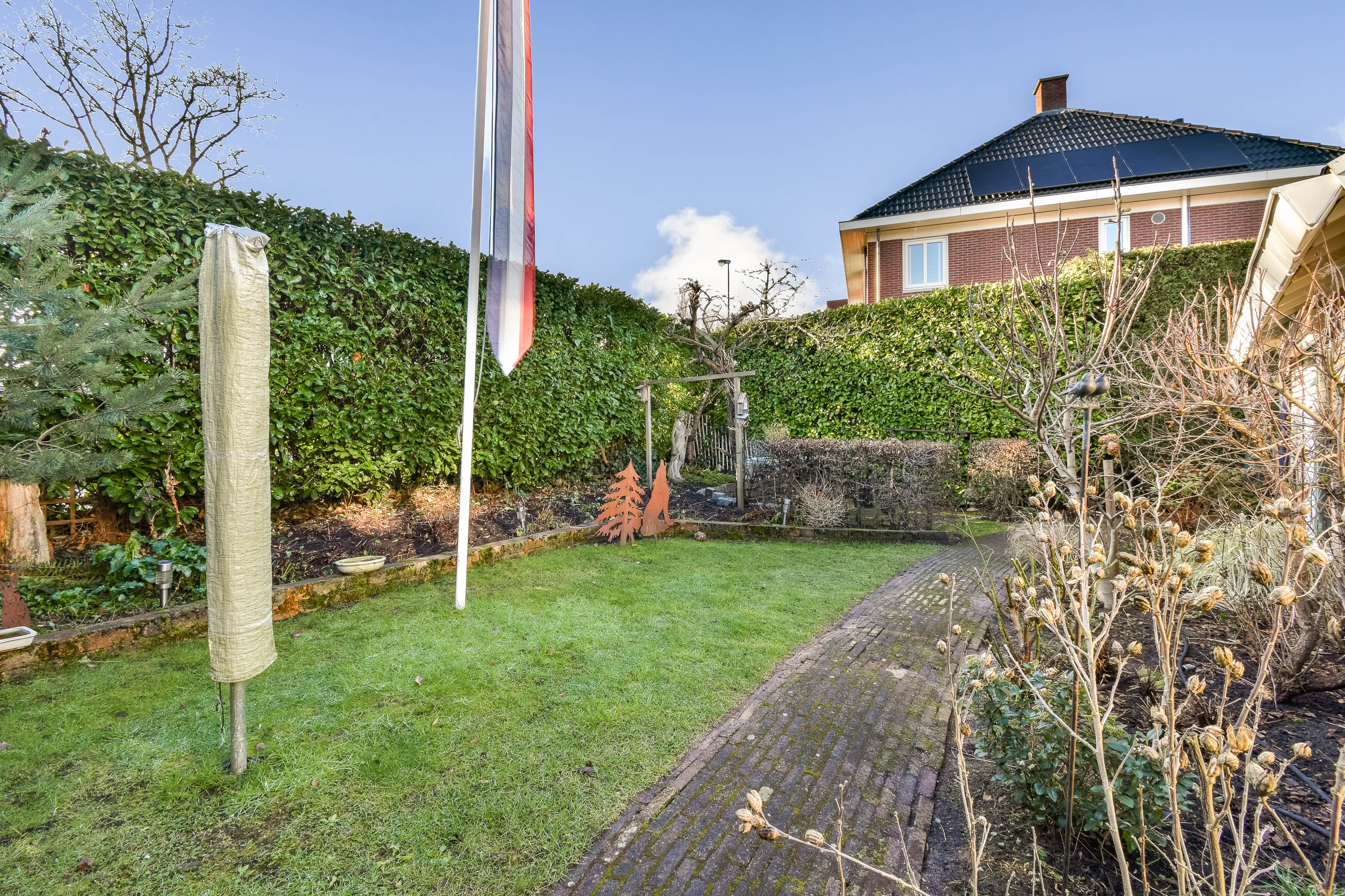 The garden is a private retreat on three sides of the house, facing southwest for optimal sunlight, offering a solar-heated outdoor pool, terraces, and established plantings. Modern comforts include double glazing, full insulation, mechanical ventilation, air conditioning, and energy class A status, with efficient heating and 14 solar panels. Security features and private on-site parking complete the sense of safety and exclusivity. This family house Bergschenhoek offers an elegant synthesis of spatial luxury and privacy, ready to meet modern living standards.