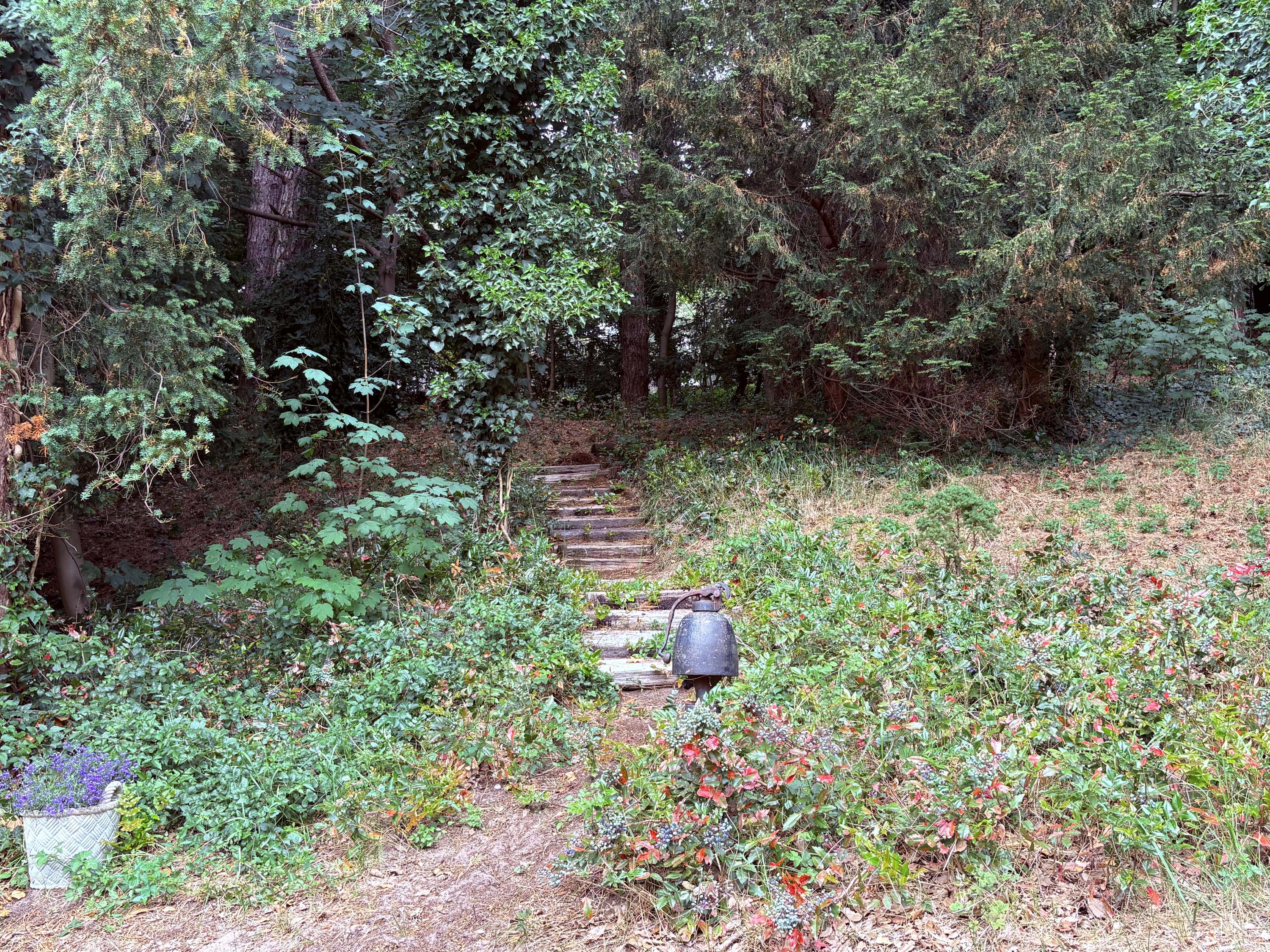 Detached villa Bloemendaal offers a refined architectural presence within the sought-after Duin en Daal villa park. Designed by H.W. van Kempen, this property evokes Mediterranean lightness with its subtle blue Louvre shutters, hipped roof, and the authentic character of French tiles in the hallway. Set on a substantial 4420 m² private plot, the house is surrounded by mature trees and elevated above the road, providing optimal privacy.