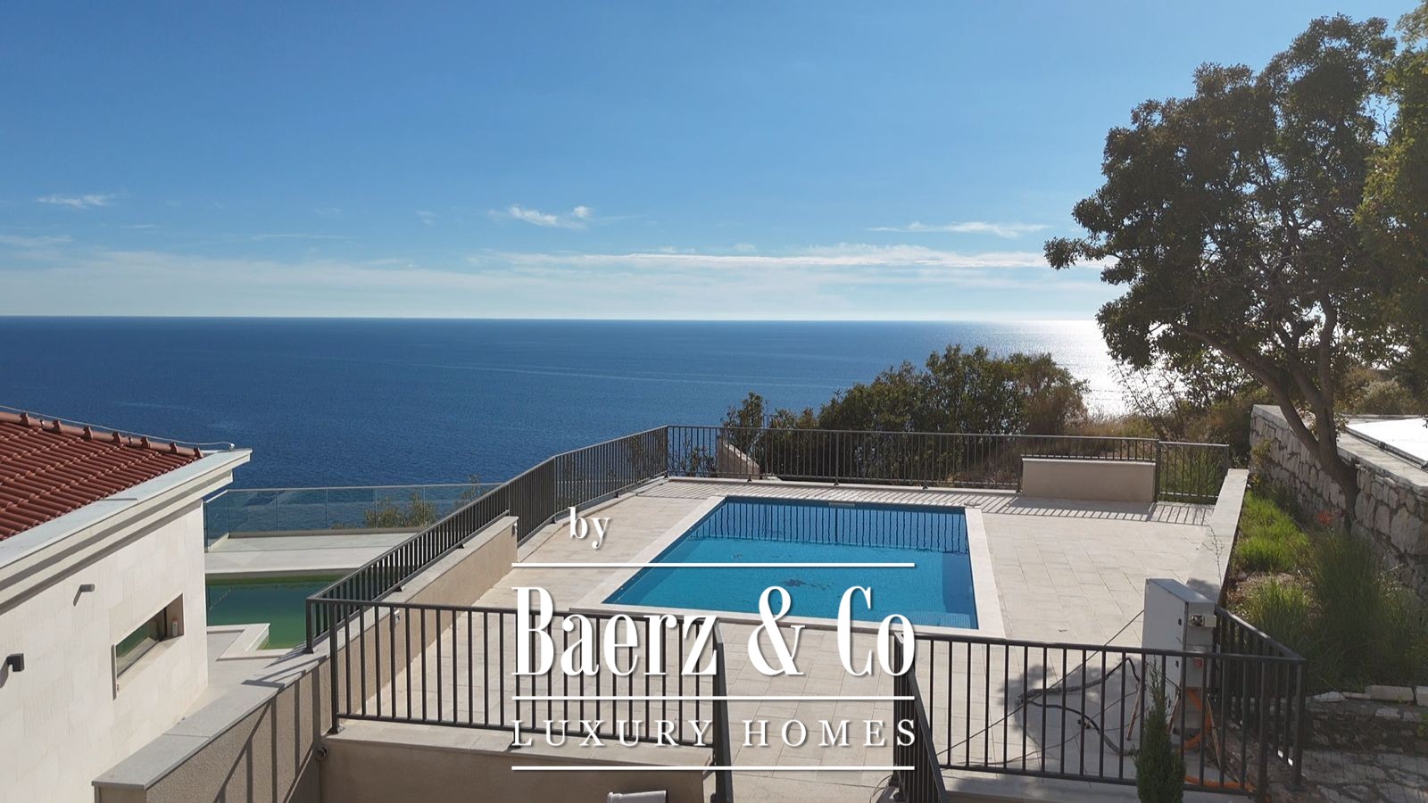 Structure of the villa: hallway, living room with kitchen and dining table, 3 bedrooms, 5 bathrooms, a technical room, a laundry room and 3 terraces. The villa has a sea view and the view of the mountains that surround it.