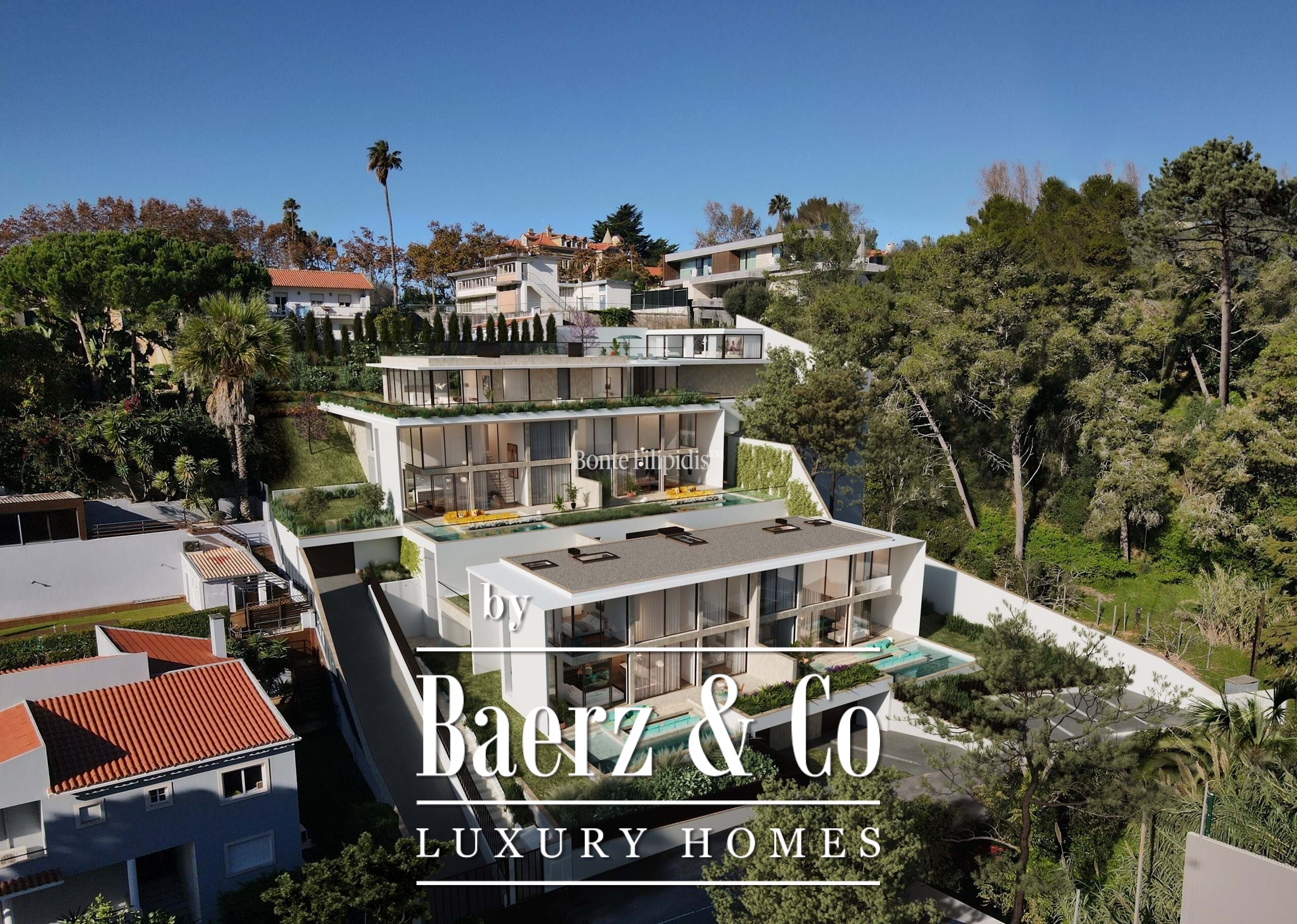 A landscaped garden and private swimming pool transition the living experience outdoors, offering a sense of calm and privacy within a secure condominium. Essential conveniences include an equipped kitchen and three interior parking spaces, solar panels for water heating, and pre-installation for electric vehicle charging. Residents benefit from concierge service, gym, and sauna, supported by a suite of security features and energy certification B. Alto Estoril places renowned international schools, restaurants, golf, beaches, and healthcare within easy reach, while Lisbon waits just 25 minutes away—a contemporary villa that balances destination living with refined ease. The rare combination of modern design, controlled light, and refined amenities makes this luxury villa for sale in Cascais e Estoril an exceptional proposition.