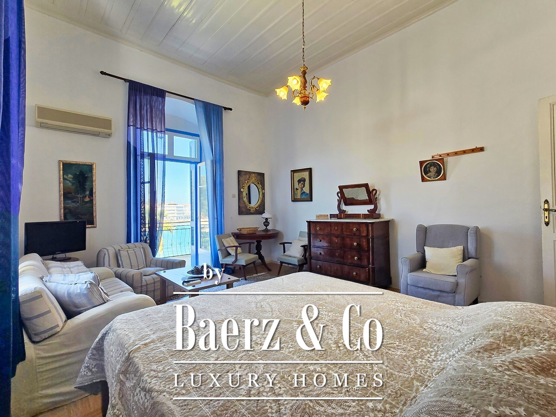 This apartment retains the tactile presence of its original stone while offering present-day comforts including air conditioning and electric heating. The orientation, views, and breadth of living spaces situate this address as a rare opportunity to inhabit a chapter of Spetses history, balanced by city amenities and the constant invitation of the Aegean.