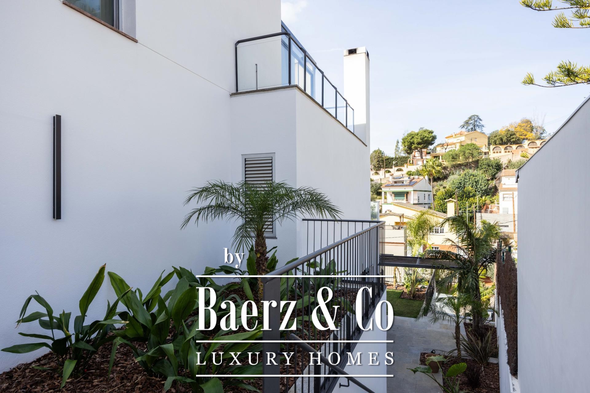 Four landscaped terraces extend the experience outdoors, surrounded by palm and banana trees, curated lawn, a shaded pergola, and a summer kitchen. The 7x5 m swimming pool and wooden sun deck invite moments of relaxation and privacy. The master suite is defined by its walk-in wardrobe, private terrace, and hydromassage bath, while two further bedrooms access a secluded outdoor retreat. An elevator connects the levels, providing comfort and effortless movement throughout the home. The villa’s refined setting in Esplugues de Llobregat ensures both discretion and immediate access to the heart of Barcelona.