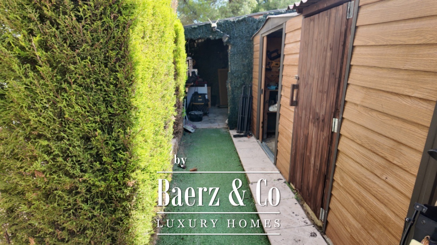 An array of amenities, including a storage room, security door, and both open and covered terraces, add to the villa’s sense of security and ease. The fenced plot and timeless finishes ensure privacy and peace, characteristic of this elegant luxury villa for sale in Finestrat.