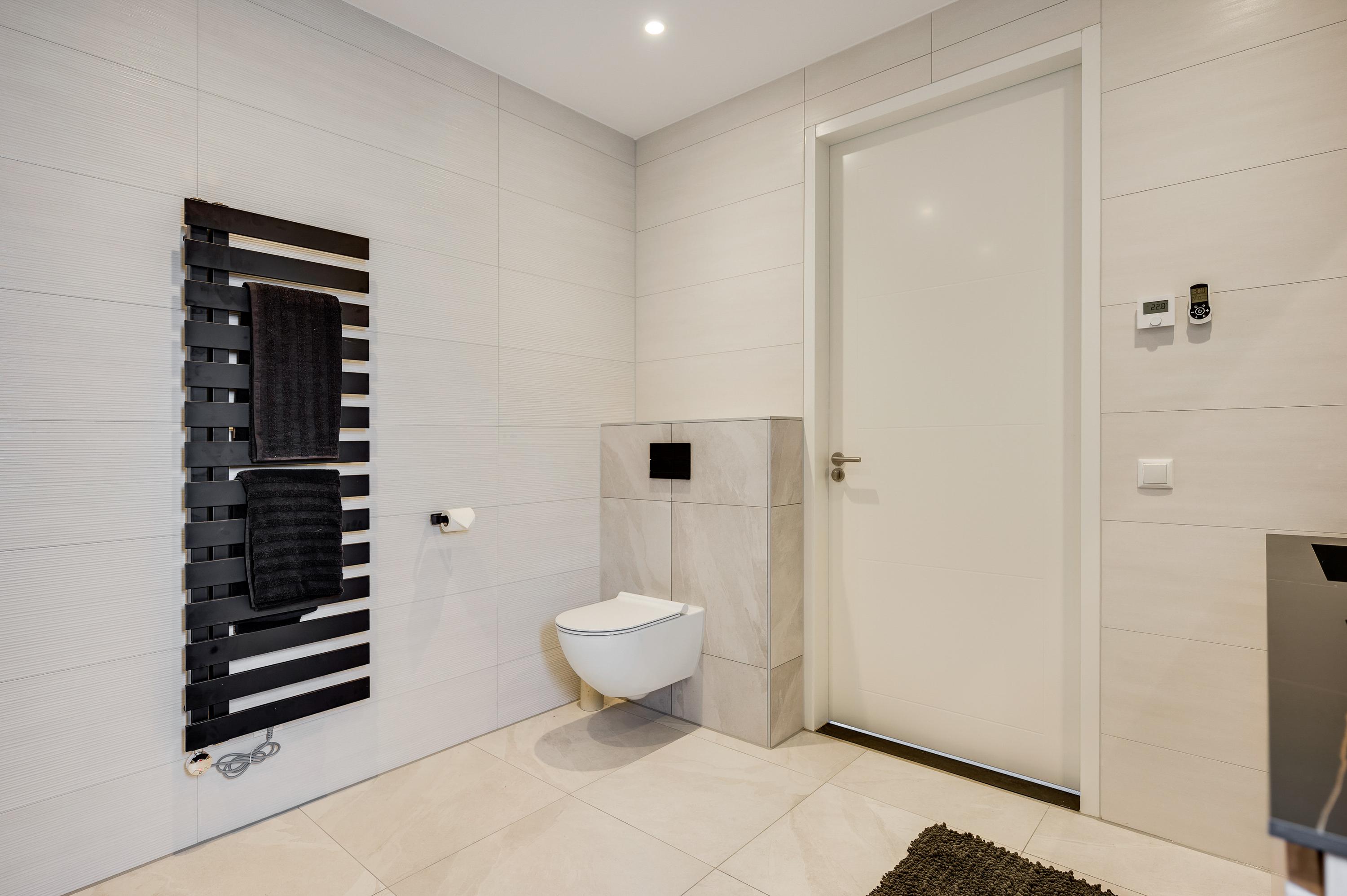 On the L-shaped second floor with high ceilings and a dormer window you will find bedroom 3 and 4. Both rooms are spacious and overlook the water. The third bathroom is also located here, which has a walk-in shower, sink and toilet. Finally, you will find the technical room here, where you will also find white goods connections.