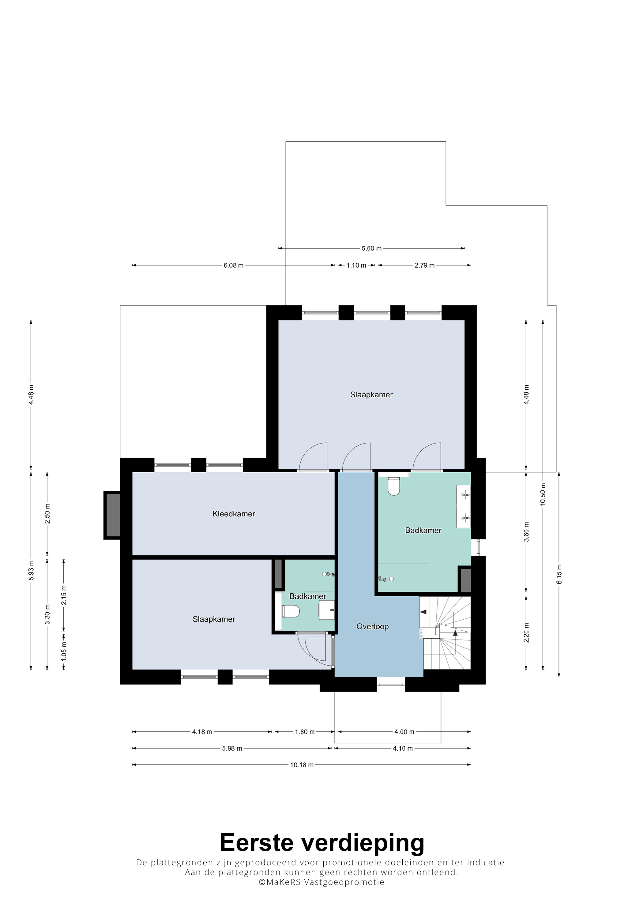 Via the landing, with daylight, you enter the 2 spacious bedrooms, both with their own bathroom.