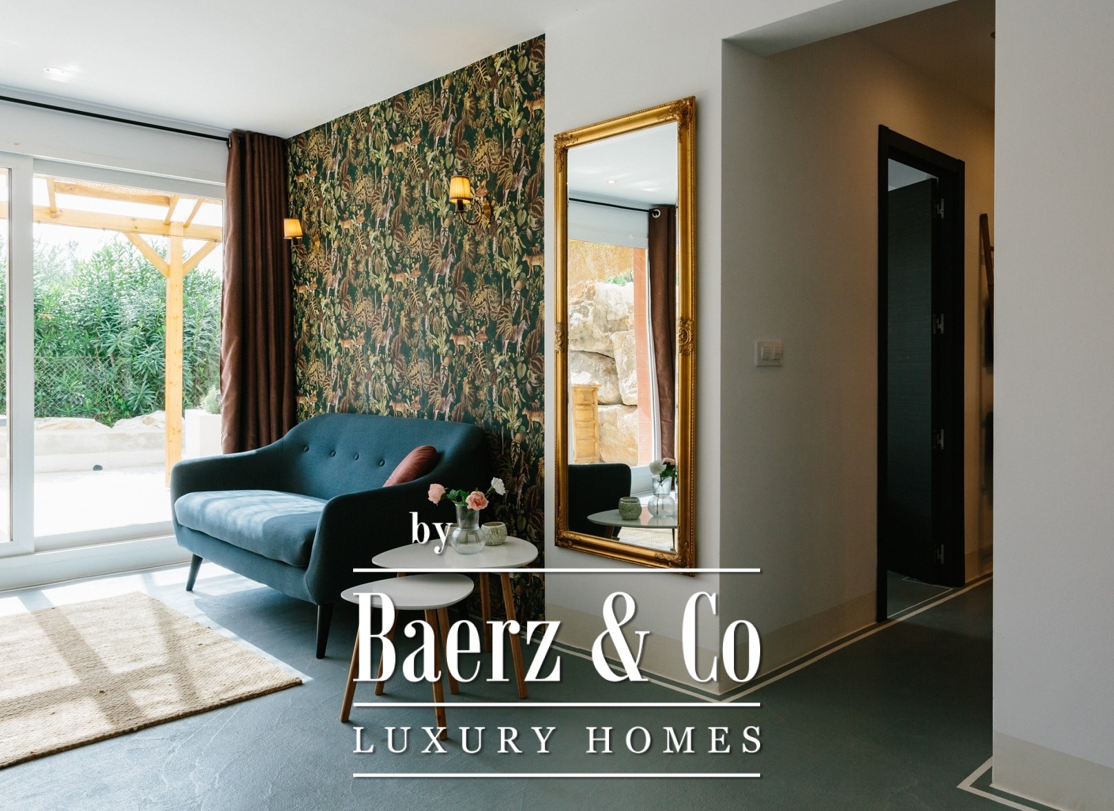 A staircase leads to the lower level of the property, where the 4 independent studio apartments are located — each designed to a high standard. All offer a private kitchenette, an en-suite bathroom and access to individual terraces that connect seamlessly to the landscaped garden.