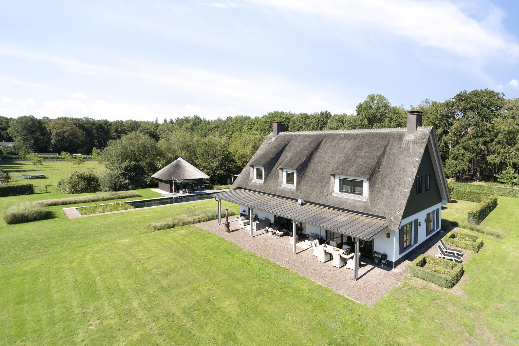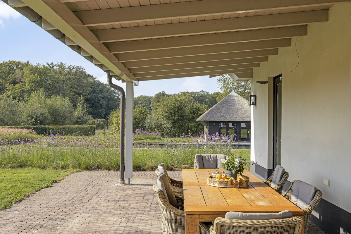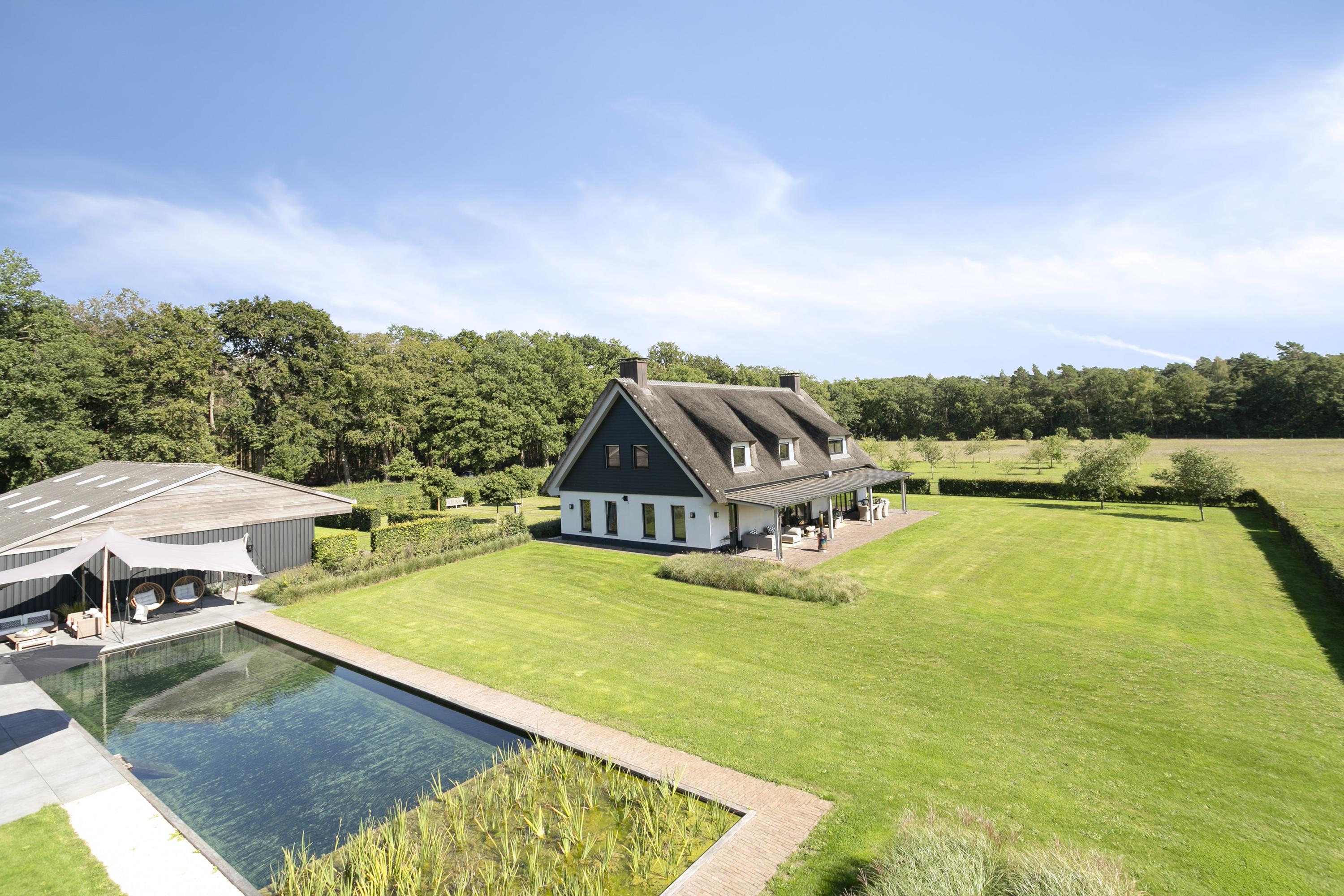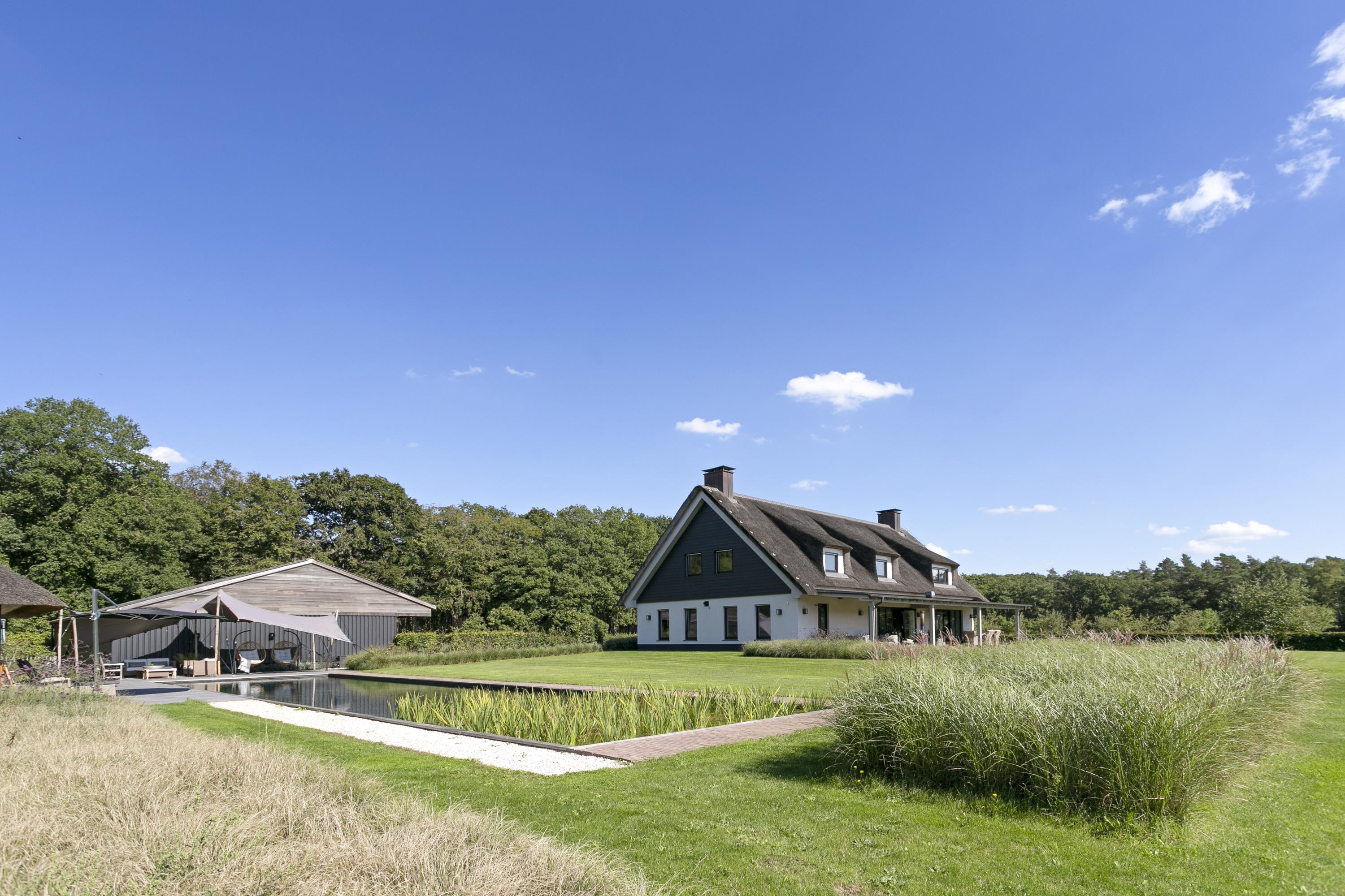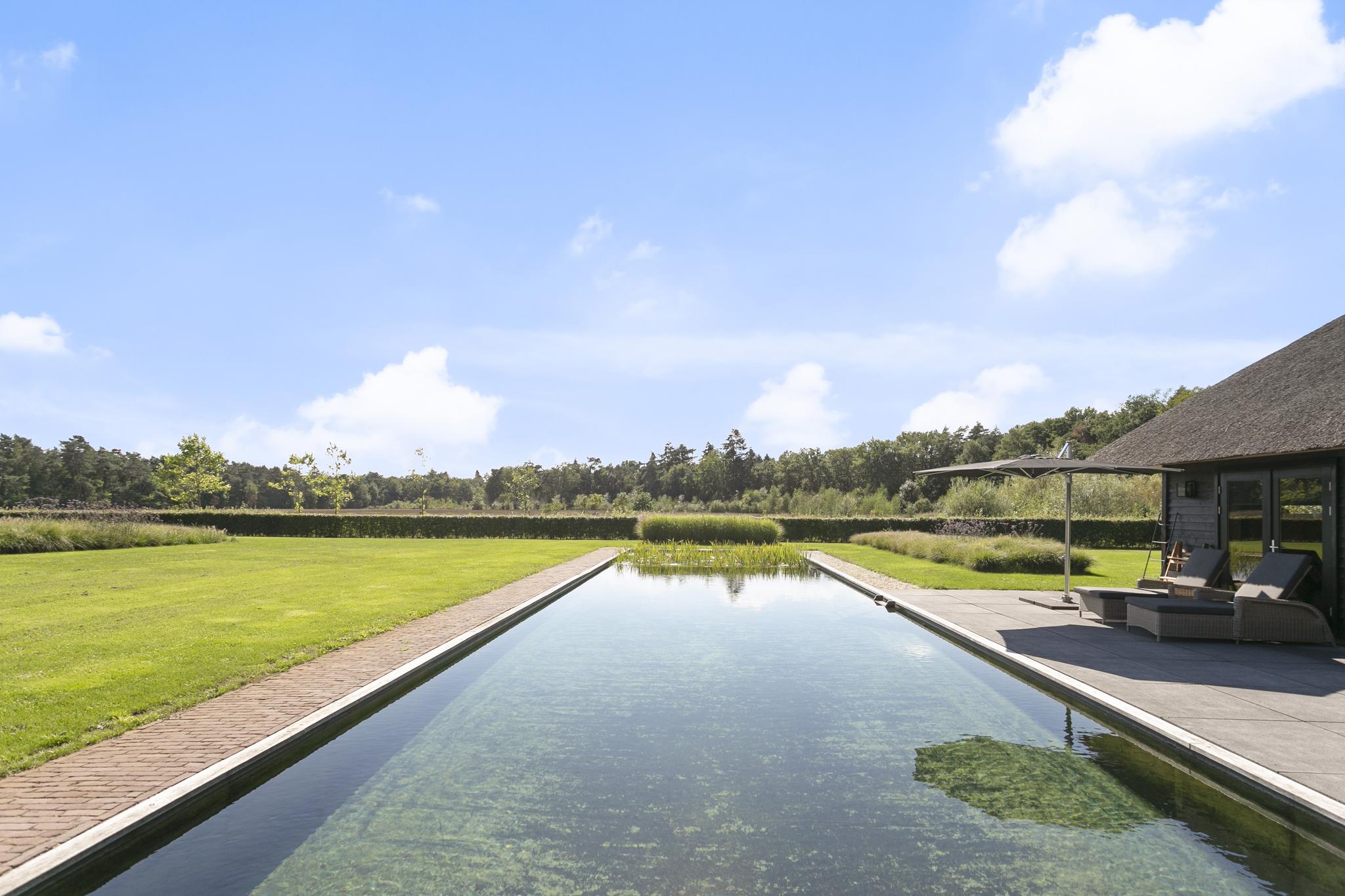 Is there anything more delightful than splashing around undisturbed in your own pool? There is a superlative for that too: the swimming pond. This beautiful, elongated swimming pond is a natural and healthy pool where the water is filtered by aquatic plants that are in a separate tank. The view of the estate obviously contributes nicely to the overall feeling of well-being.