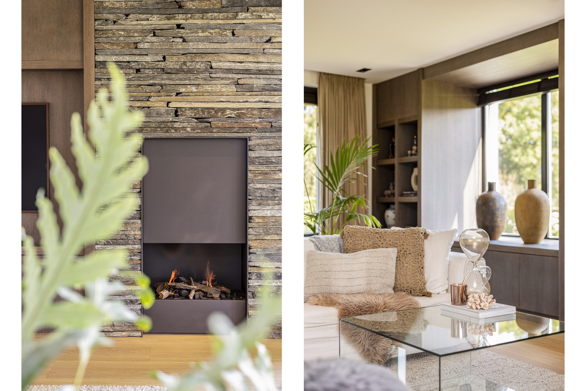 The fixed cabinets, as well as the fireplace areas and kitchen, are artisanal craftsmanship and have been combined by the interior designer to create an impressive whole.