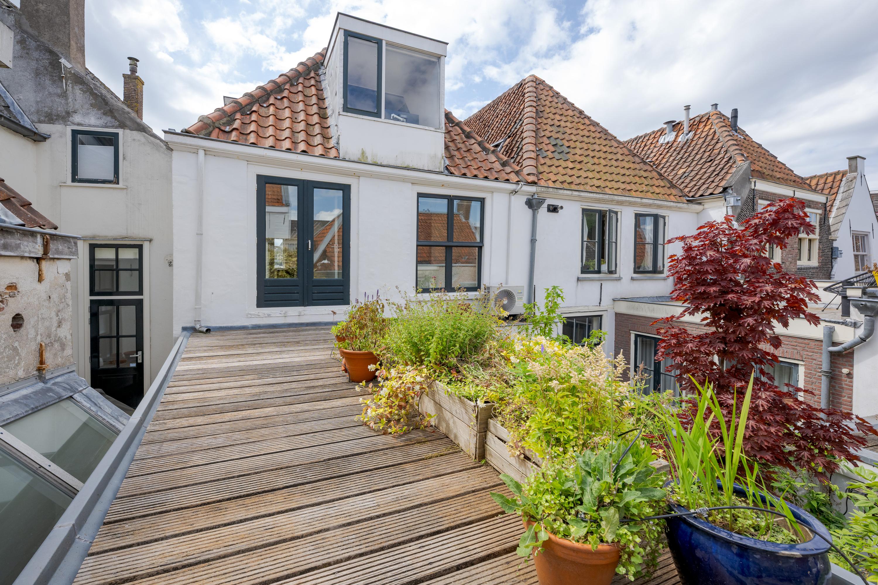 What also makes this property unique is the remarkable combination of a stately, classic façade on the canal side (three windows wide, facing south) and a surprisingly spacious rear garden of over nine meters. On the first floor, at the heart of the house, lies a colorful courtyard garden, and a dozen steps up, a spacious and sunny roof terrace with plenty of privacy and several seating areas.