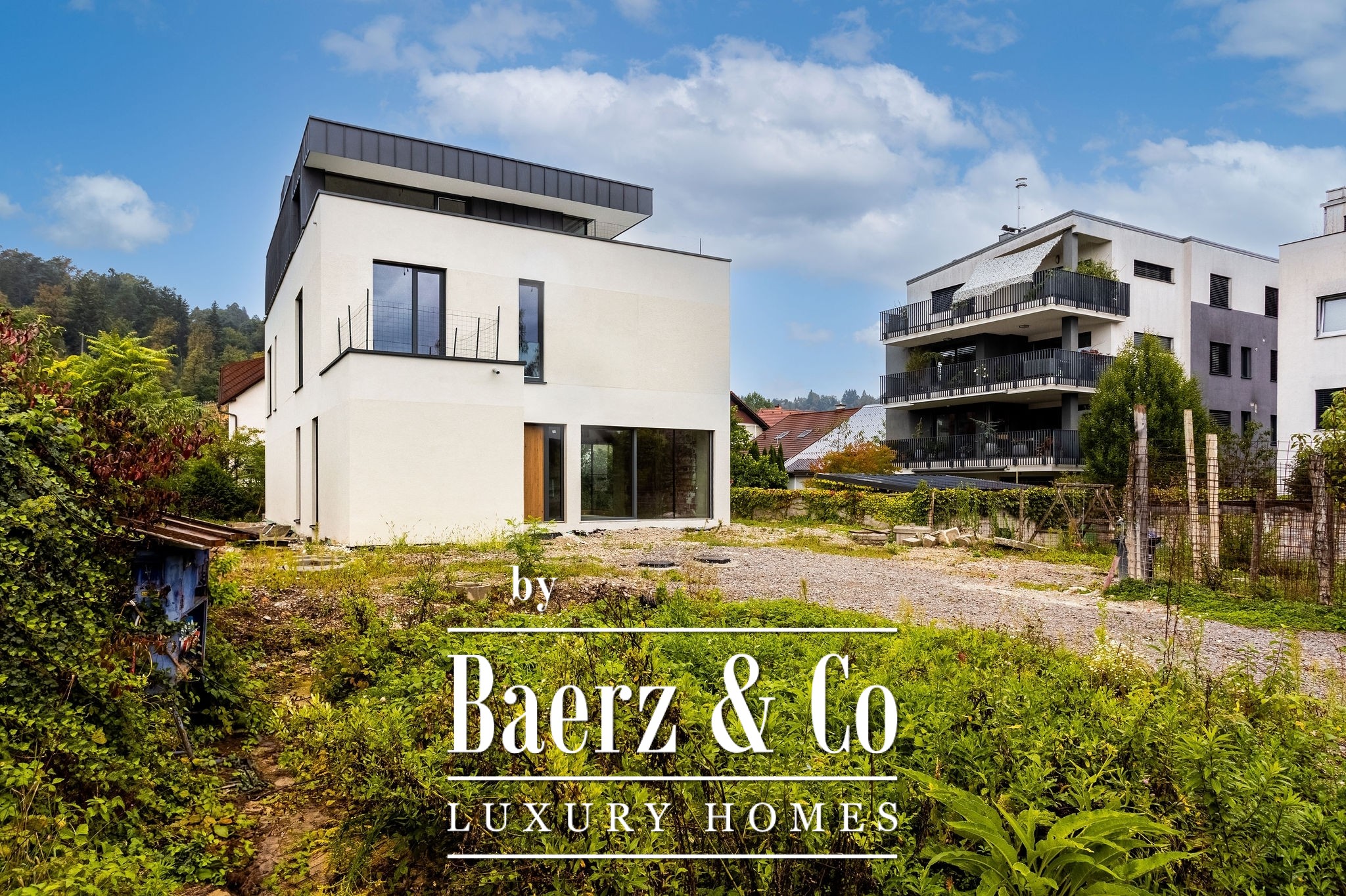 In one of the most desirable and elite locations in Ljubljana, in the heart of Rožna Dolina, a spacious and bright villa in the extended third construction phase is for sale. With its contemporary architecture, high ceilings, and panoramic windows, it creates a sense of space, airiness, and openness towards nature.