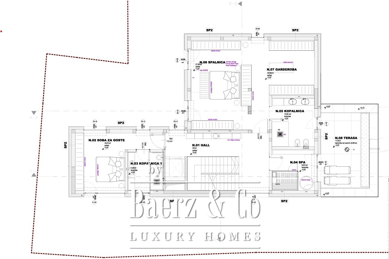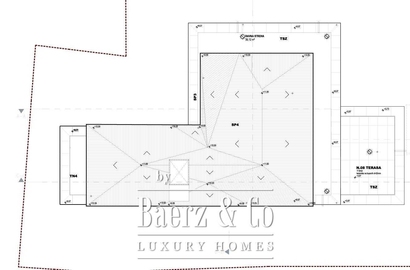The villa stands on an 824 m² plot, and its design allows for full customization according to your wishes. It can be transformed into a luxurious family home, an exclusive residence for individuals who enjoy an active and social lifestyle with a fitness area, wellness, and spacious terraces, or into a modern property that combines premium living with personal or business space.