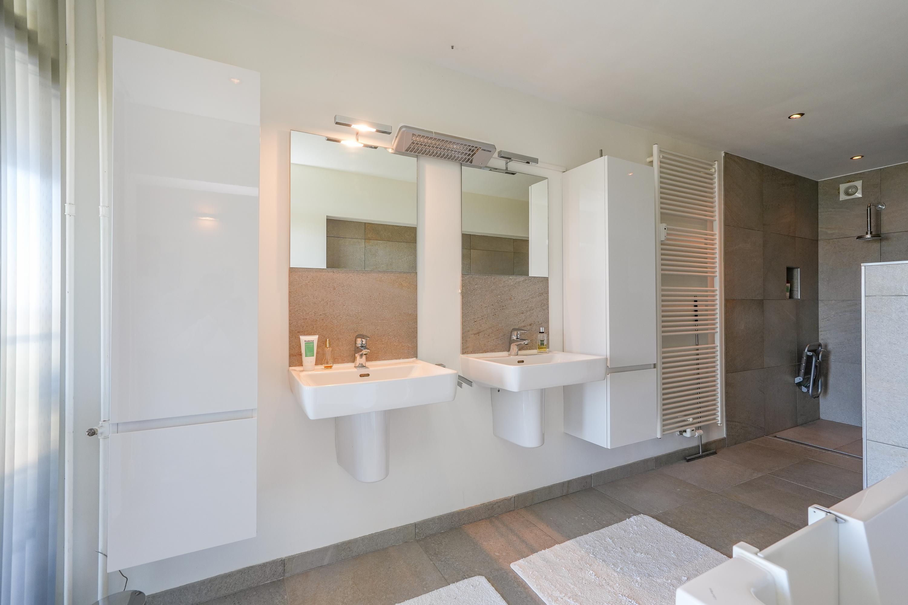 The kitchen is equipped with various built-in appliances and provides access to the first, south-facing balcony. Adjacent to the kitchen is an internal utility room offering additional storage and workspace. From the living room and the balcony there are beautiful views over the city of Nijmegen and Radboud University. A gas fireplace separates the dining area from the television/lounge area on the south-west side. The west-facing balcony offers lovely views towards the River Waal and the iconic Waal Bridge.