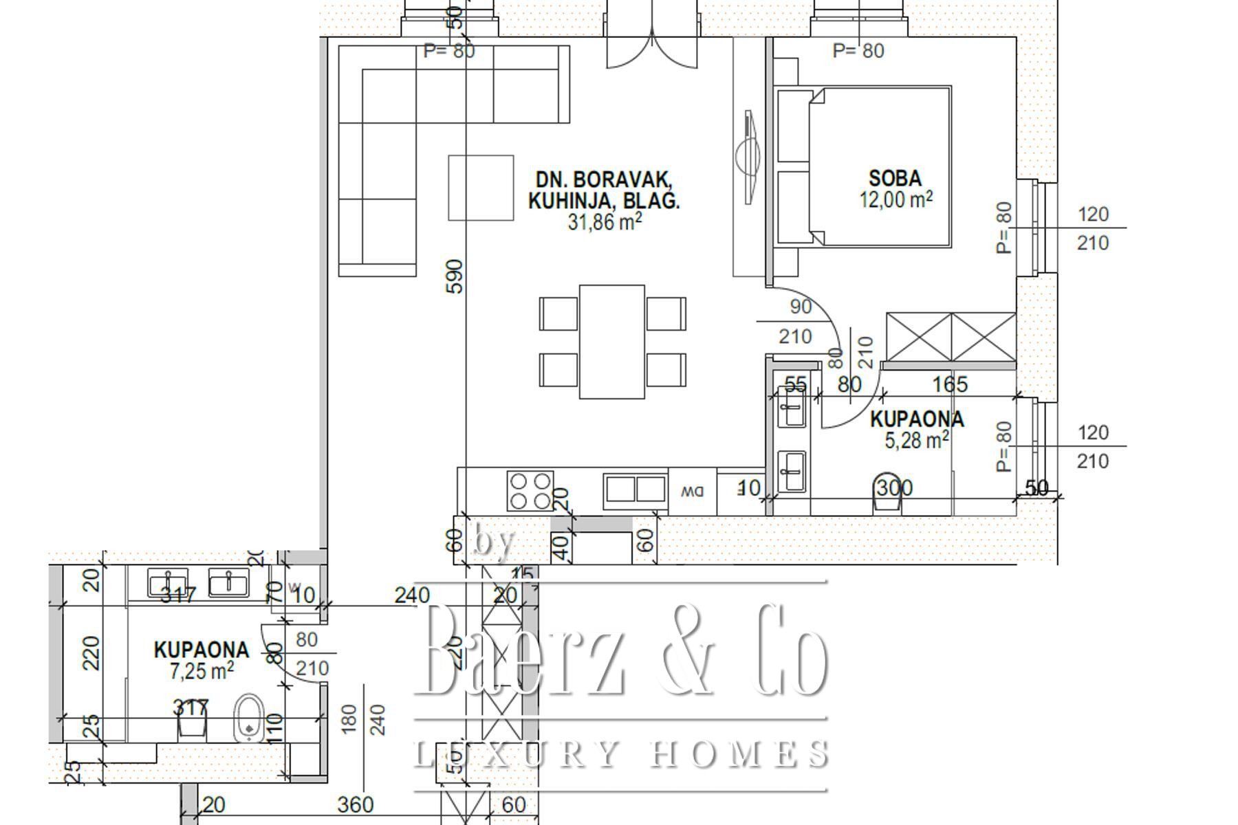 Apartment Opatija presents an opportunity to reside in the very center of one of Croatia’s most refined coastal cities. This 73,05 m² residence is newly renovated to exacting standards and designed to welcome light and space through open-plan living. The apartment comprises a generous hallway, a modern living area with integrated kitchen and dining space, a tranquil bedroom, two bathrooms, and a 3,04 m² balcony overlooking panoramic city and Adriatic views.