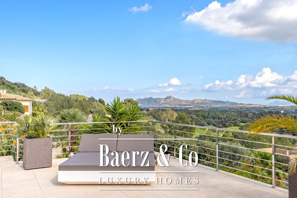 Mediterranean villa Pollença stands as a rare offering in one of the island's most sought-after settings, surrounded by just 20 exclusive residences and directly bordering a 9-hole golf course. Spanning a 2,319 m² plot and offering 672 m² of living area, this villa is poised above the landscape, delivering panoramic sea and mountain views that extend across the greens towards the bays of Pollensa and Alcudia. The south-facing orientation enhances the light-filled interiors, while intelligent landscaping guarantees complete seclusion for the pool, terraces, and gardens.