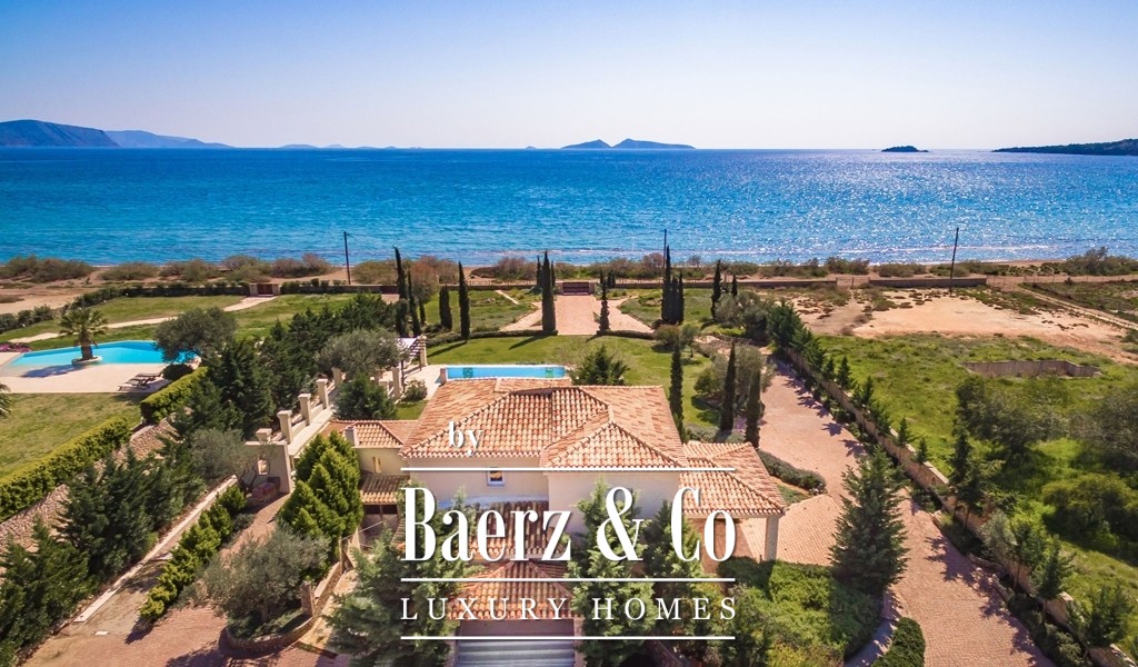 Seaside villa Porto Heli is a newly built residence set on a 4,000 m² coastal plot in Petrothalassa, offering a rare sense of privacy and scale. This villa features approximately 400 m² of refined living space arranged over two levels, including seven bedrooms and an additional guest WC, providing exceptional flexibility for private family living or elegant entertaining.