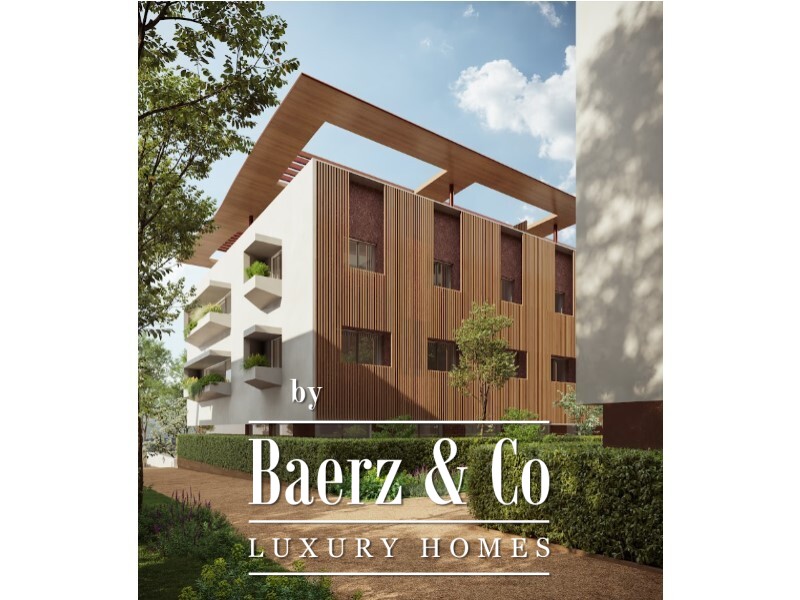 The three bedroom suites are distributed along a private corridor, with the master suite benefitting from its own terrace access. Five bathrooms provide fluid comfort throughout. The building is shaped by the vision of architect Manuel Ventura and forms part of a trio of residential blocks, complemented by amenities such as a Tea Garden and Wellness studio, a fully equipped gym, massage room, and multifunctional area.