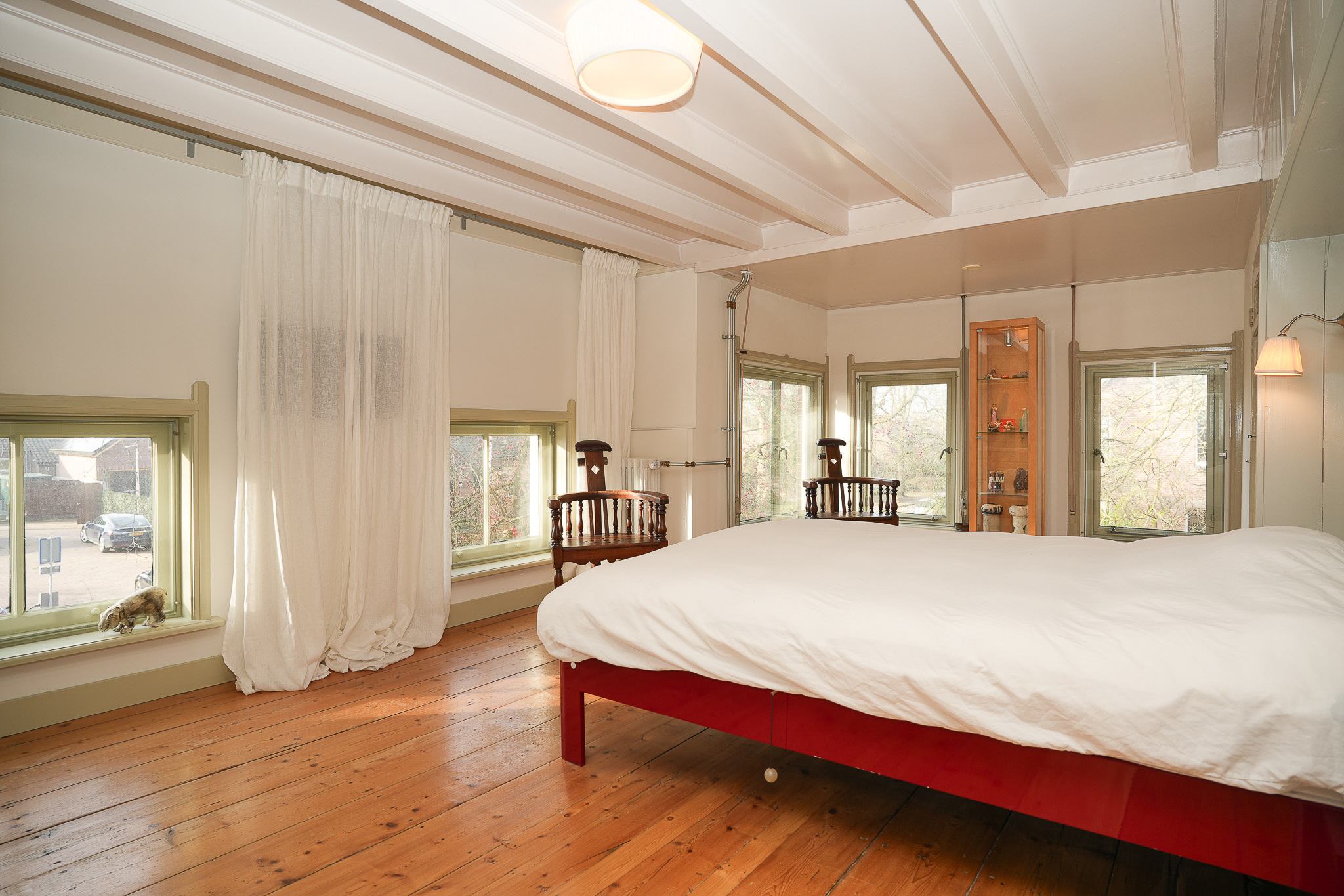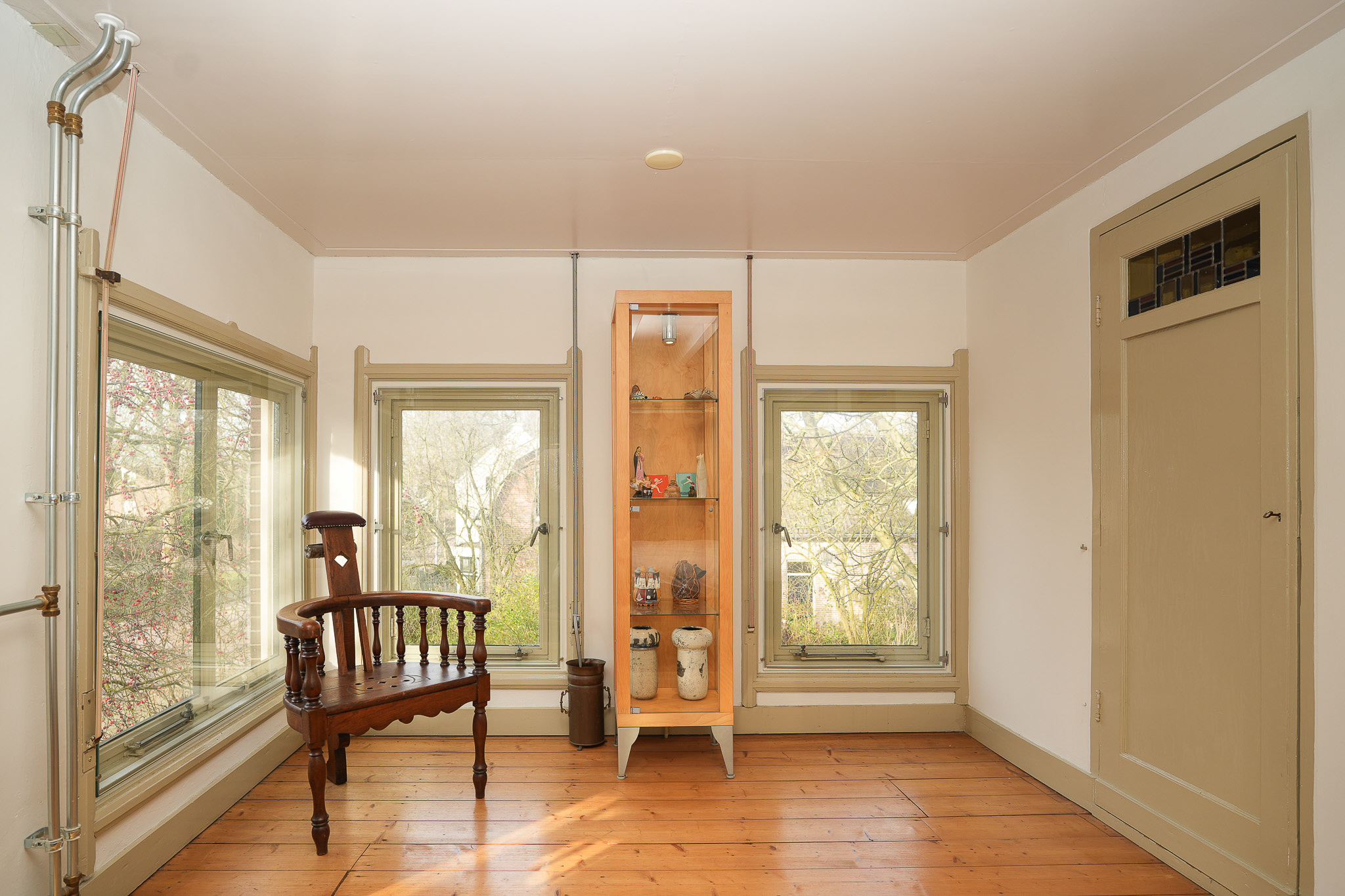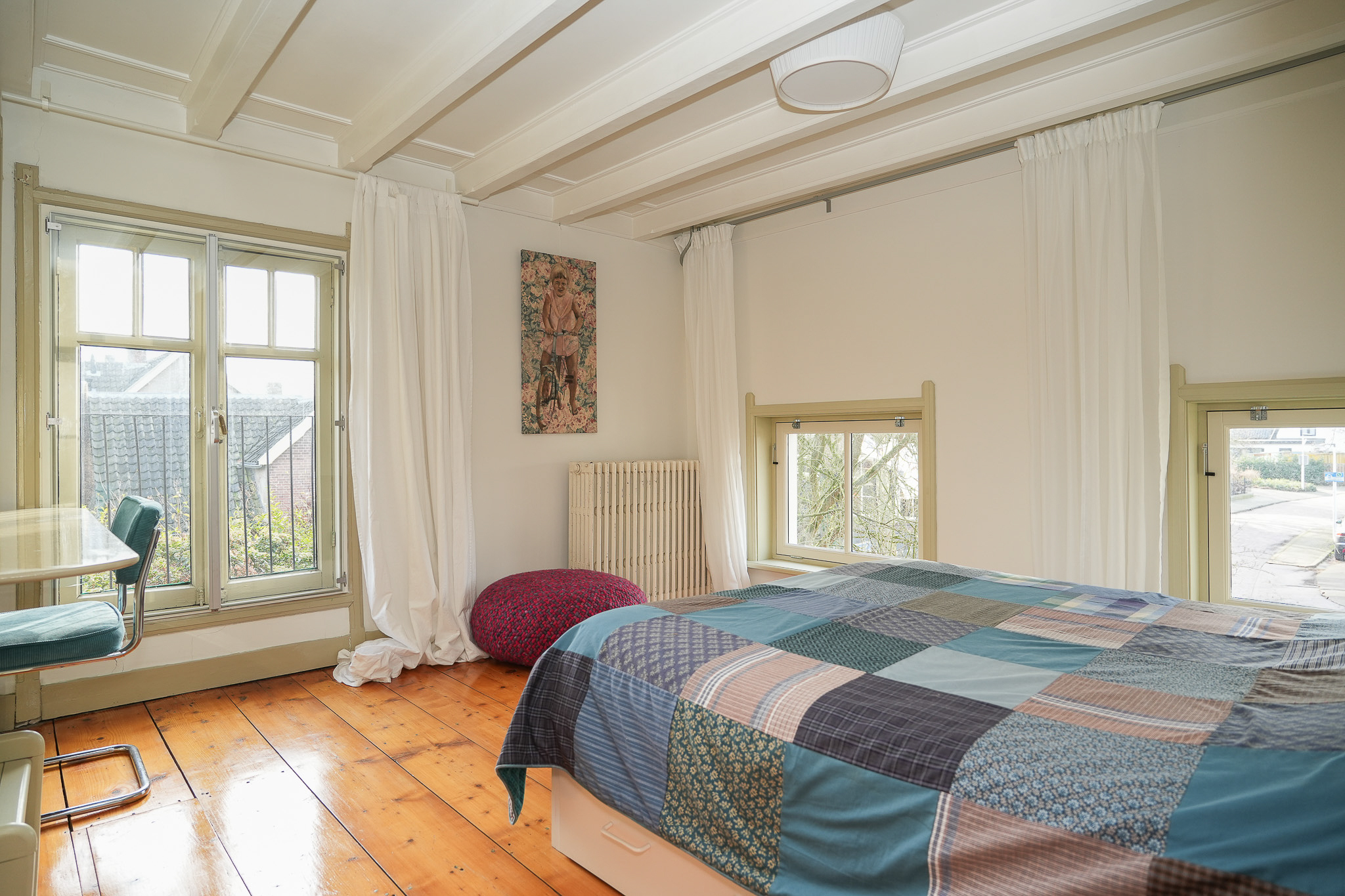 Deze verdieping telt vier slaapkamers, waarvan drie in het voorhuis. De kamers variëren in grootte en indeling, wat de verdieping flexibel maakt voor gebruik als slaap-, werk- of logeerkamer.