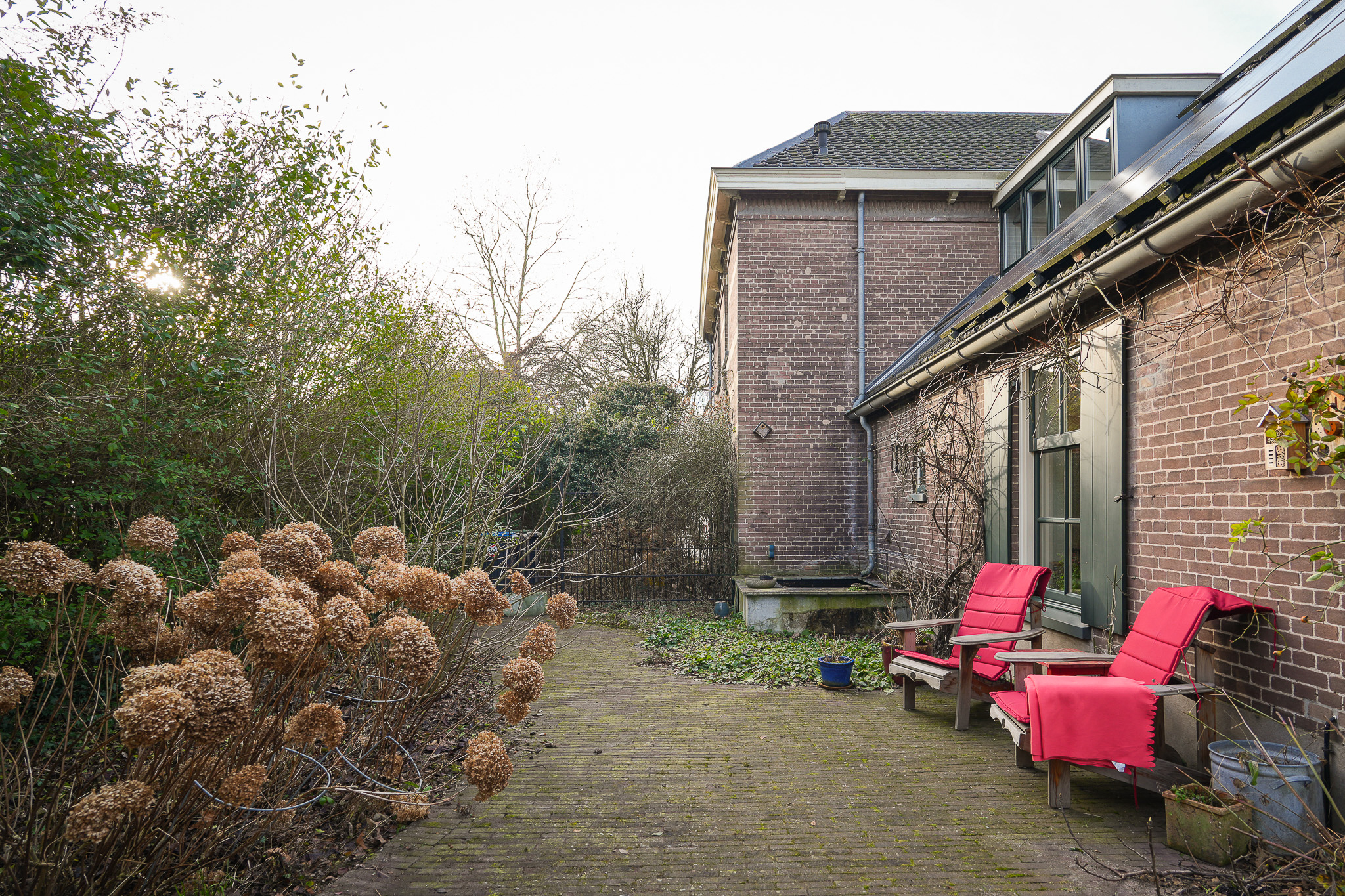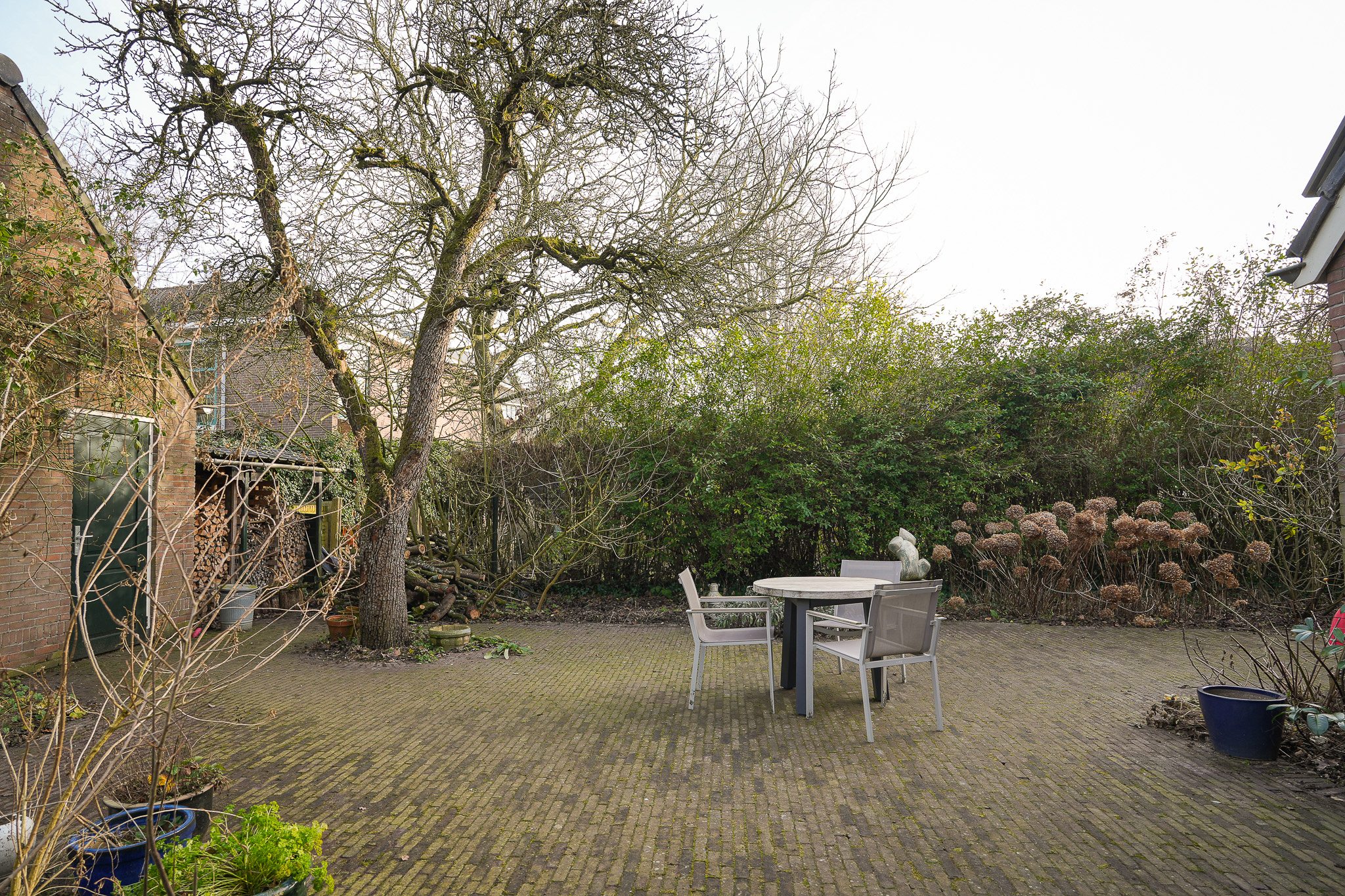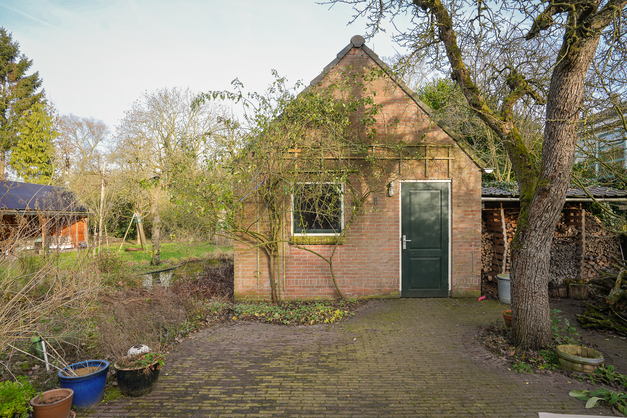 Daarnaast vinden uiteenlopende vogelsoorten en salamanders hier hun toevlucht, wat de tuin tot een levendige en biodiverse buitenruimte maakt. Onder de overkapping van ruim 25 m², gerealiseerd in 2019, is er een fraai zicht over de tuin. De stenen schuur met pannendak vormt een waardevolle aanvulling en biedt ruimte voor opslag, hobby of tuinbenodigdheden.