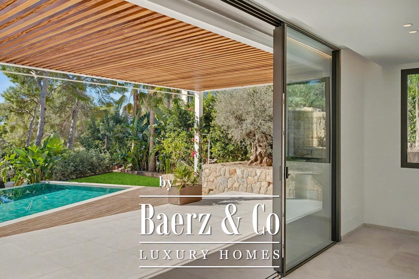 Throughout, integrated heating, smart lighting, and sliding teak shutters underscore the villa’s commitment to comfort and refined living. The property includes a two-car garage, technical room, and storage on the lower level. The rooftop terrace crowns the home, offering a vantage point for sunsets, the Mediterranean horizon, and the calming presence of the sea breeze — an ideal retreat for those seeking a luxury villa for sale in Sant Elm.