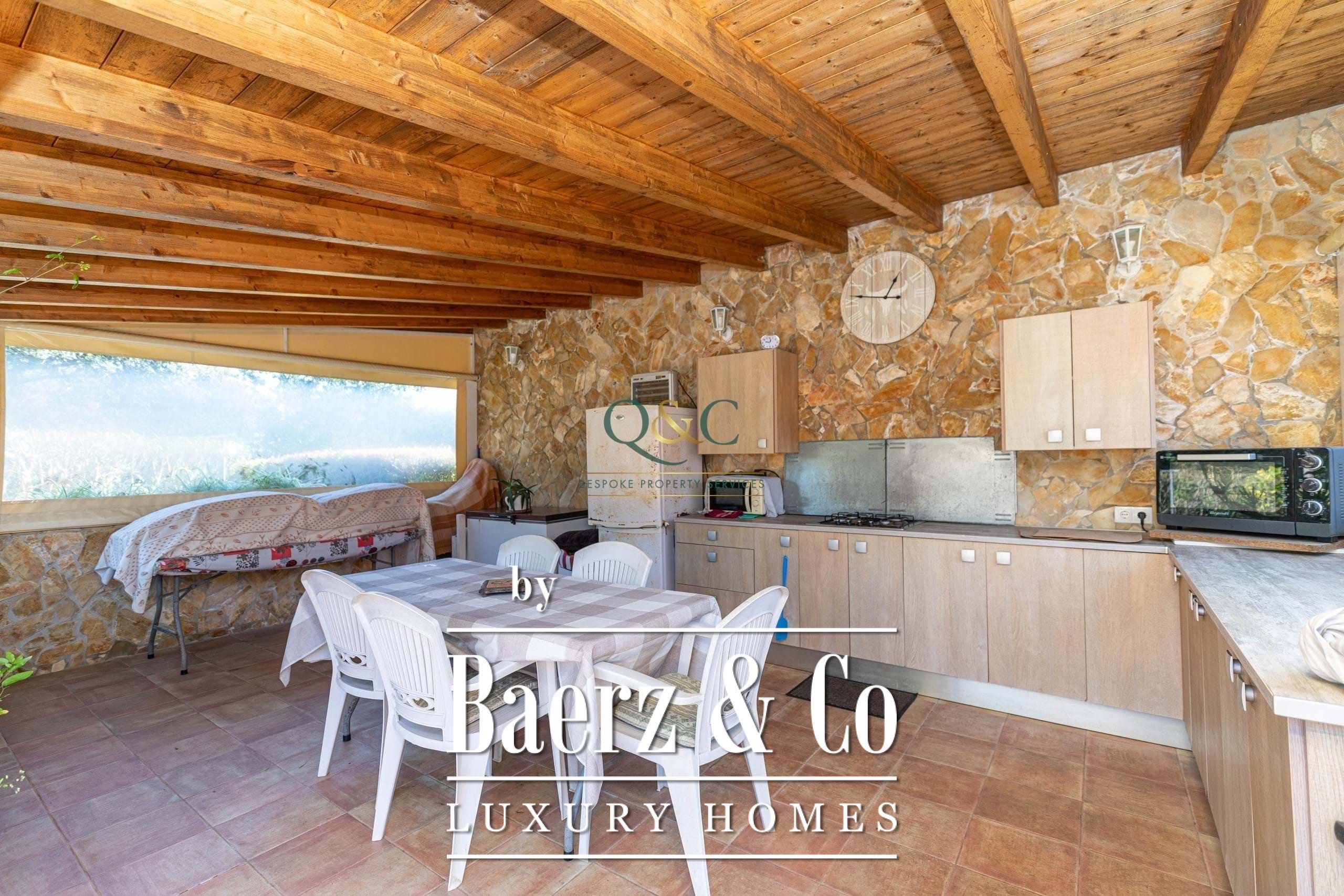 Outdoor spaces are crafted for privacy and utility, from the fenced, low-maintenance gardens to the summer-ready, fully equipped outdoor kitchen. An upper terrace frames the countryside, offering sun and refuge. Storage, laundry facilities, electric gates, and fibre optic internet further guarantee convenience. This villa for sale in São Brás de Alportel places you near the town’s renowned amenities—markets, cafés, schools, medical services, and the Algarve’s beaches and Faro airport, all within easy reach.