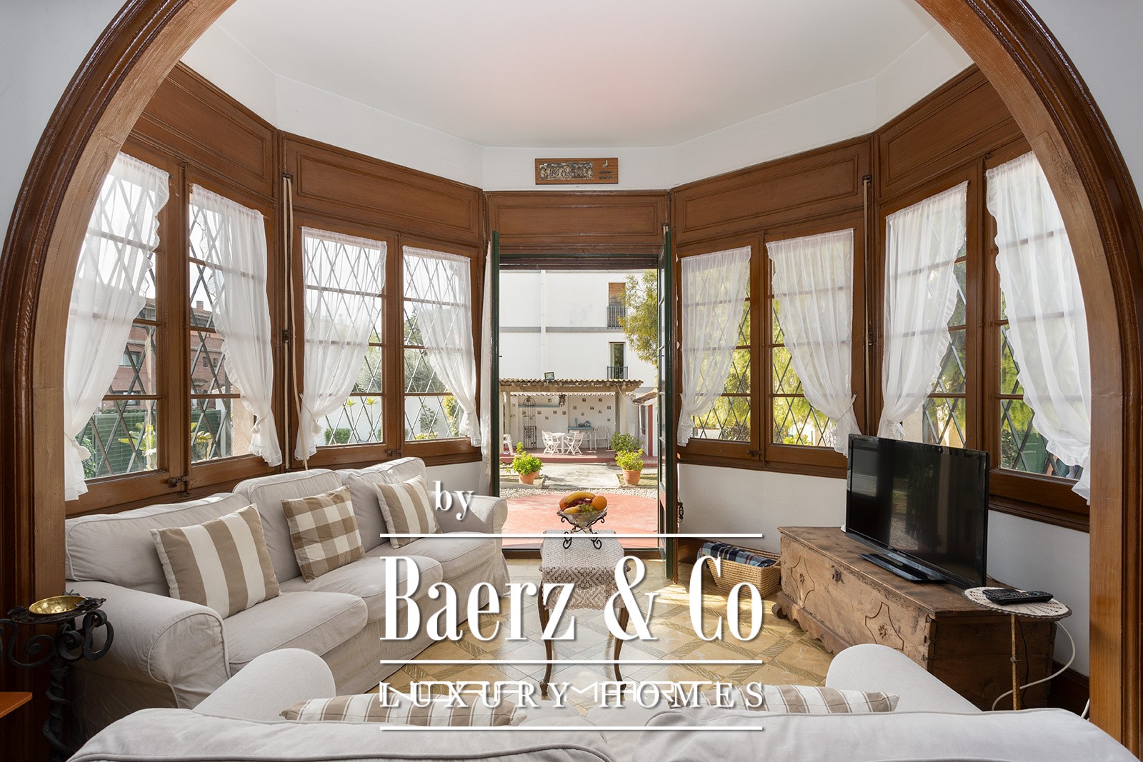 Complementing the main house is an additional residence with two bedrooms, a bath, a garage, and a solarium, suited to guests or service. The situation, 100 meters from the beach and within walking distance of Sitges’ amenities, offers a balance of centrality and discretion rarely found in the region. For those seeking a property with provenance, ample space, and privacy, this historic house in Sitges stands as a distinctive opportunity.