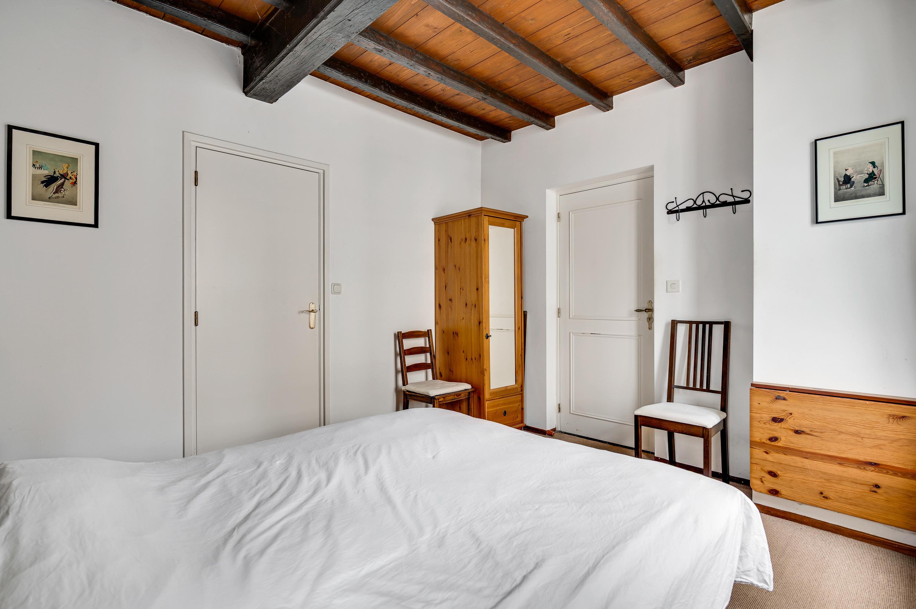 The spacious hall with a fireplace and meter cupboard provides access to the toilet, a bedroom with a separate bathroom, and the kitchen. The stairs to the first floor are also accessible from the hall. The hall also served as the B&B's former living room. This space can be used for various purposes.