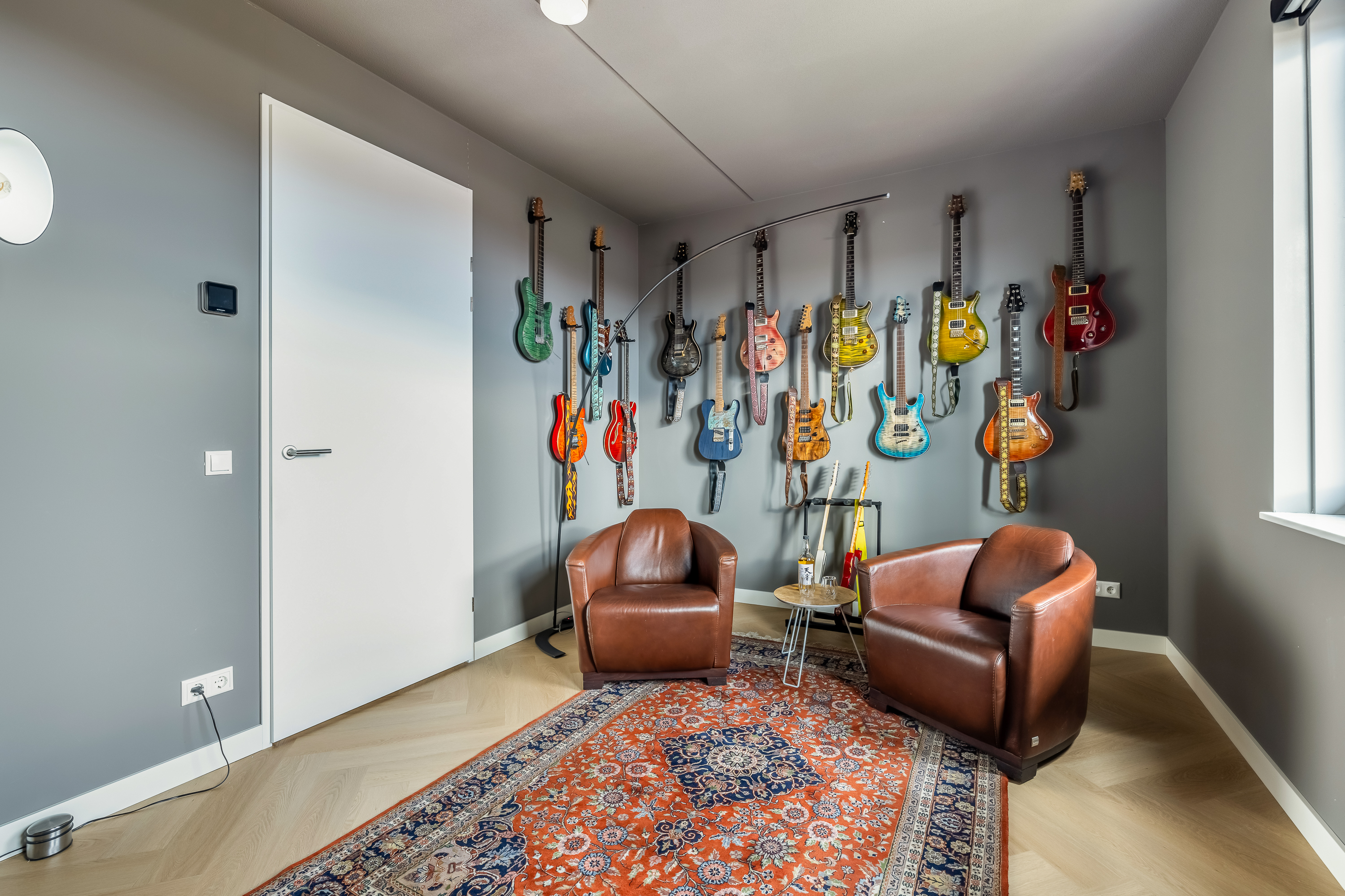 Landing and technical room. At the front is the master bedroom with a beautiful built-in wardrobe. At the rear is currently a large man cave, but this space can also serve as an additional large bedroom. The home is so well insulated that even playing the guitar won’t disturb the neighbours — how perfect is that?