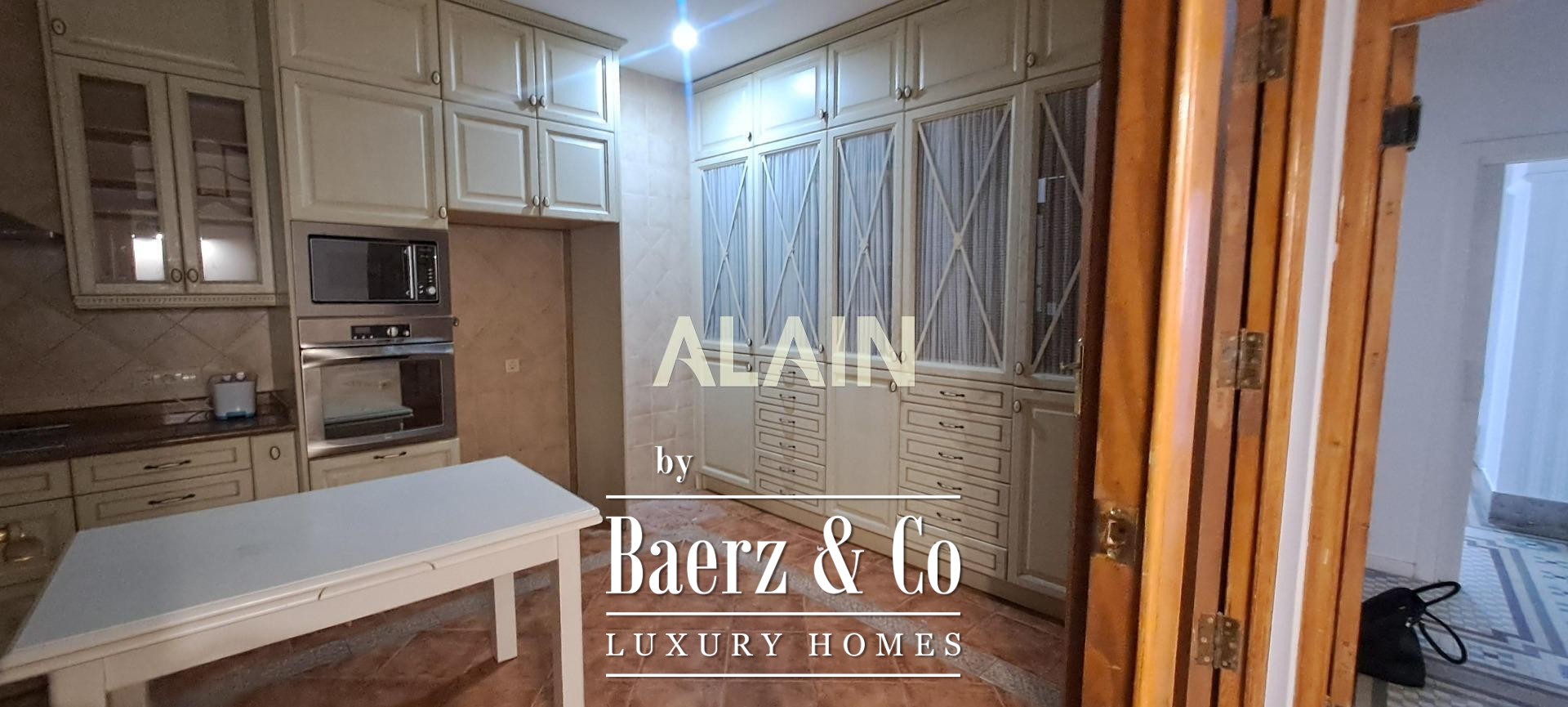 A large kitchen, fully equipped and enclosed by double doors, provides space for gatherings or solitude. The living spaces open onto an elegant balcony, offering connection to the rhythm of Valencia below. Thoughtful amenities include an elevator, air conditioning, storeroom, robust security, video intercom, and wardrobe storage. Every detail suggests enduring quality, from the armored door to the mirador and washing room.