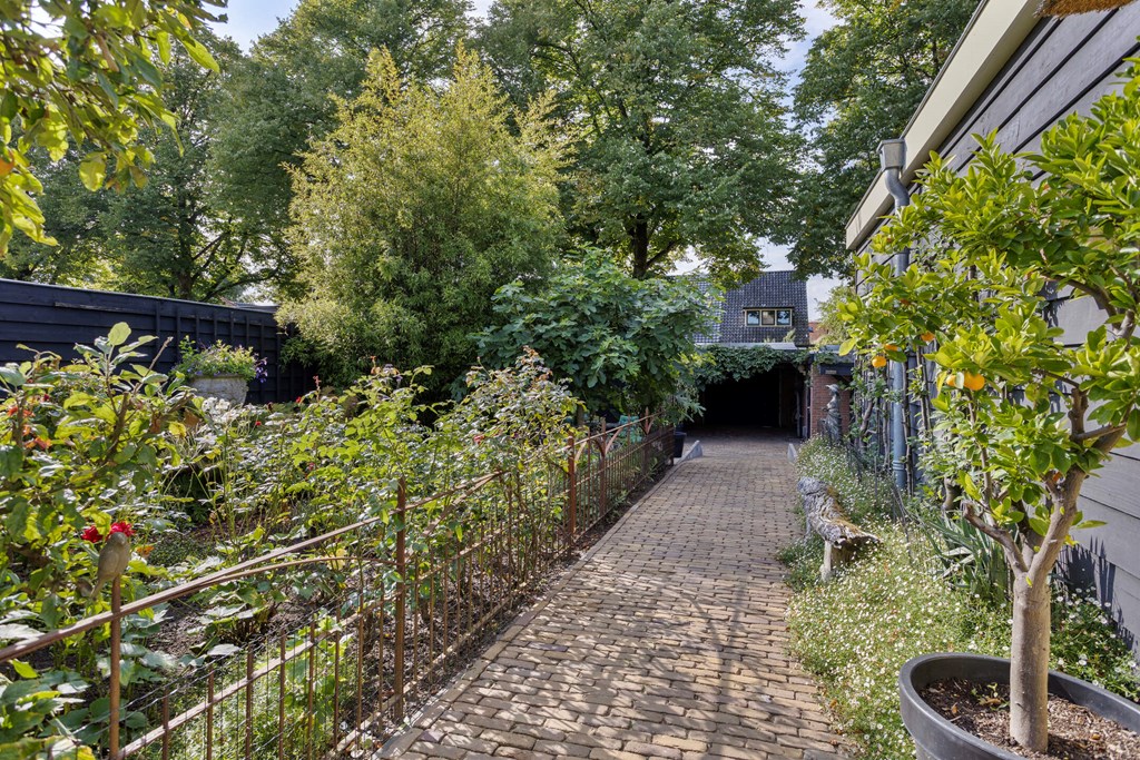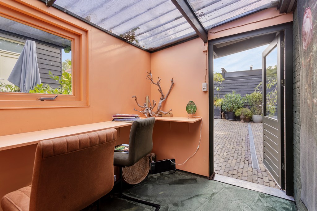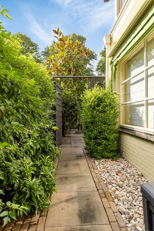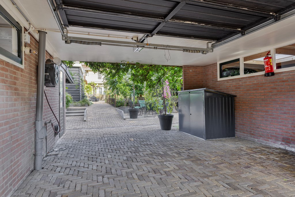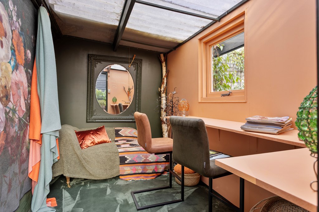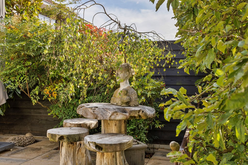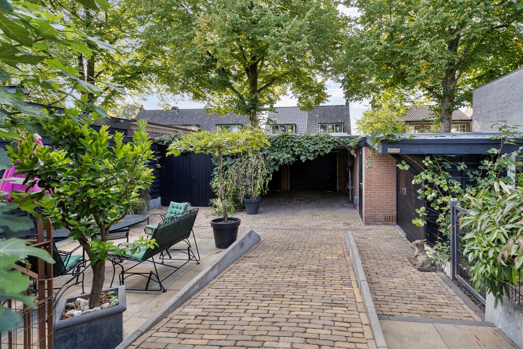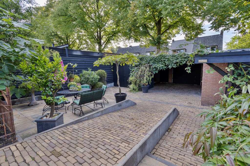 The garden is without doubt one of the villa’s most special features. With 674 m² of private land, you have ample space, privacy and tranquillity here. The garden stretches far to the rear and offers multiple terraces, elegant planting and surprising sightlines. At the back stands a large detached garage with an adjoining lockable carport and a storage room with a double skylight. As an extra addition there is a cosy garden room, attractively finished and fitted with a window. The garden is designed to shine in every season: from the first spring sunshine to warm summer evenings. It is a place where you can dine, lounge, garden and relax — all in your own green setting.