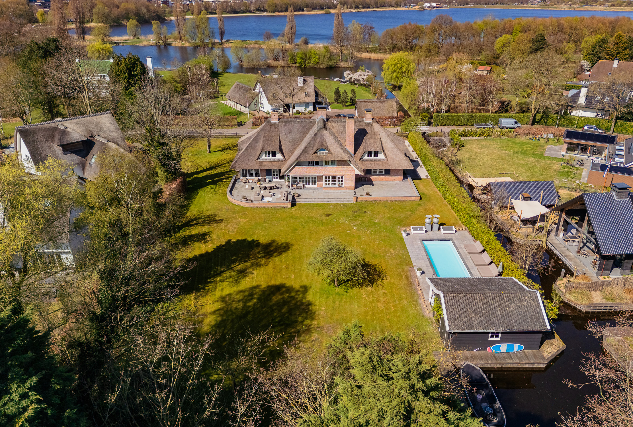This spacious, stylish villa is a dream home for those seeking luxury, comfort and privacy. Built in 2006 under the architecture of Van Egmond architects, this detached villa with a living area of 491m² offers all the space you could wish for. With 5 bedrooms, 2 luxury bathrooms, a heated outdoor pool and private moorings on the water, you have everything within reach for a carefree life full of comfort.