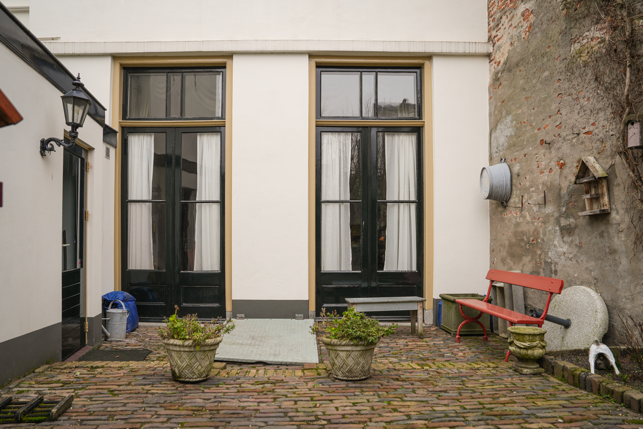 Originally dating back to the 16th century, the house features a double vaulted cellar running the full depth of the property, accessible from the garden. The property is heated via an Intergas HRe boiler. In front of the house lies a charming stone stoop with wrought-iron railings on either side. Behind the property is a delightful city garden with a rear entrance to Koningstraat. This evergreen garden is arranged with terraces paved in traditional brick, bordered by low hedges and shrub-lined beds.